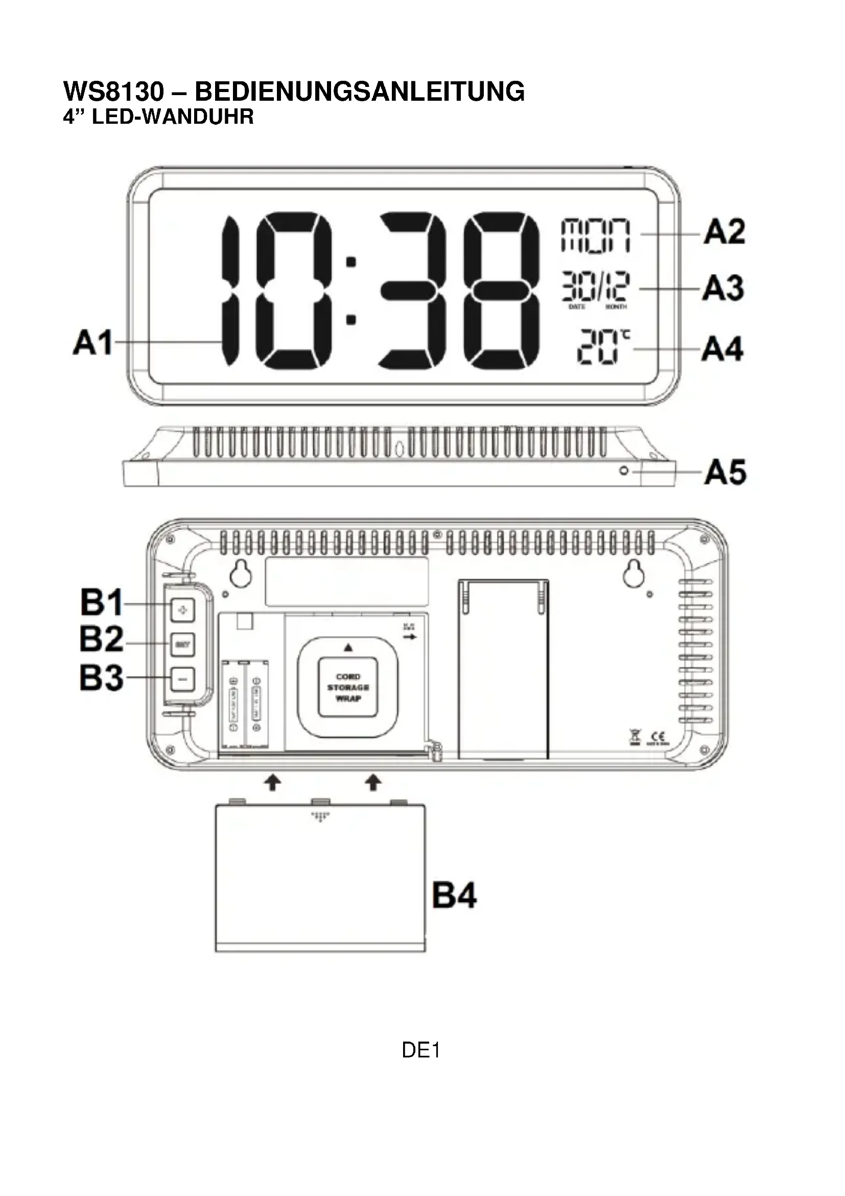 DE1 WS8130 – BEDIENUNGSANLEITUNG 4” LED-WANDUHRDE2