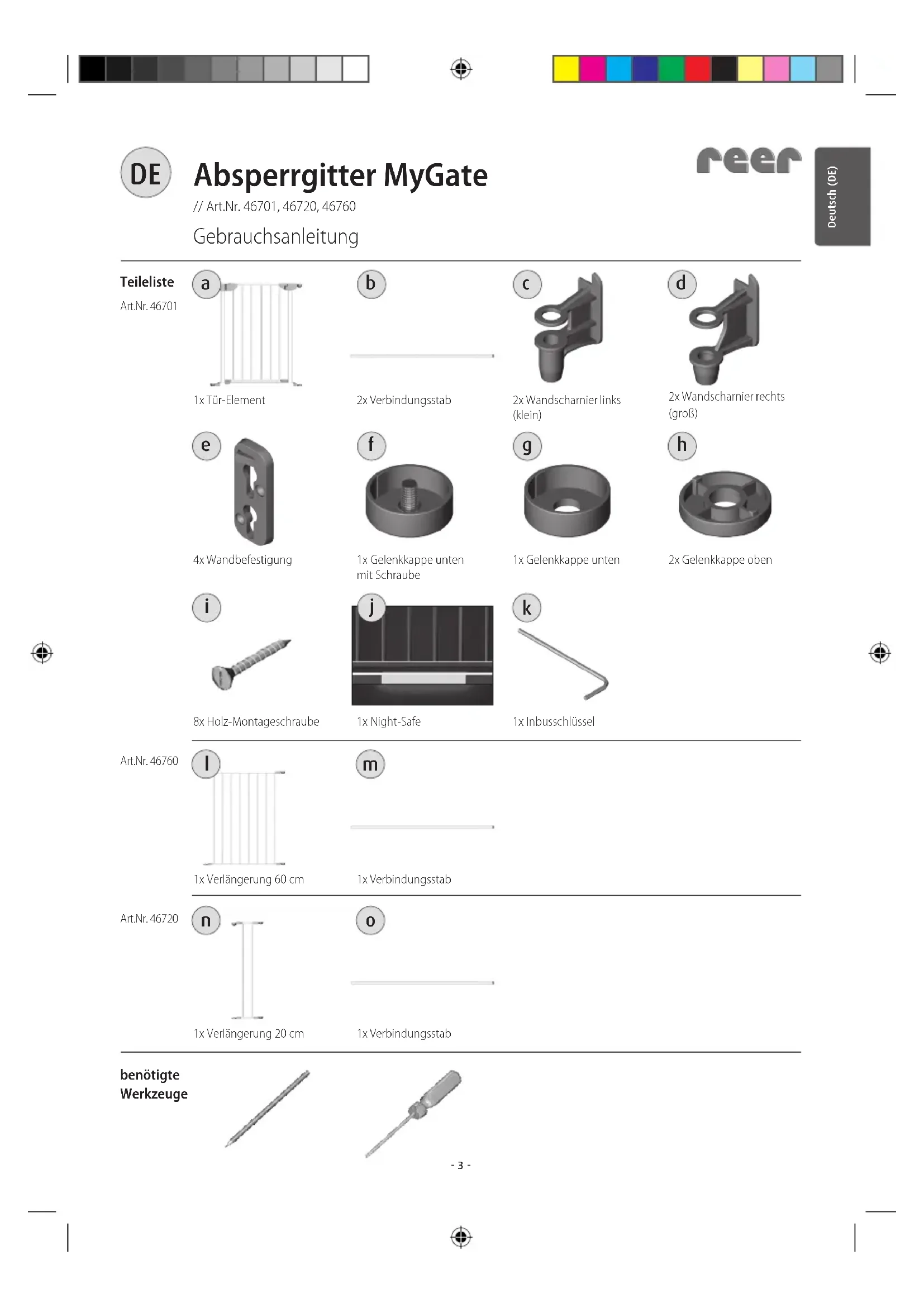 MyGate 46701 - Kindersicherungsgitter Reer - Kostenlose Bedienungsanleitung