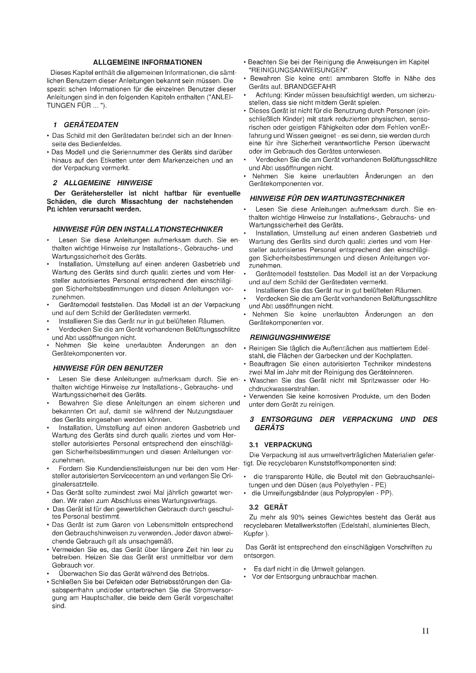 - Installation, Umstellung auf einen anderen Gasbetrieb und Wartung des Geräts sind durch qualifi ziertes und vom Her- steller autorisiertes Personal entsprechend den einschlägi- gen Sicherheitsbestimmungen und diesen Anleitungen vor- zunehmen.