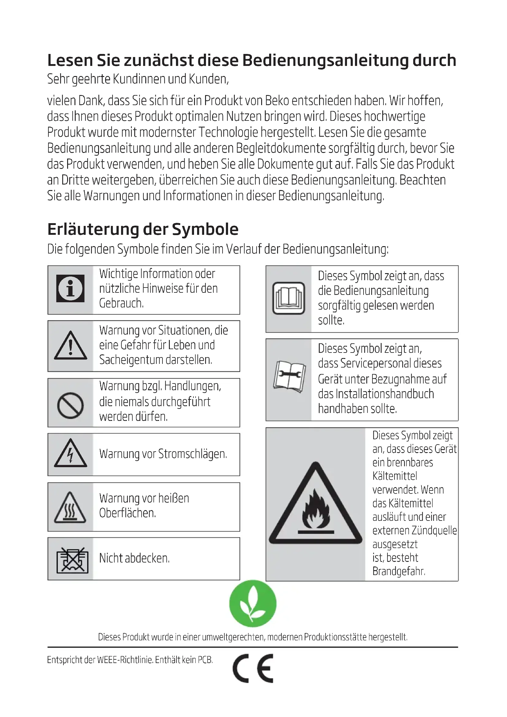 vielen Dank, dass Sie sich für ein Produkt von Beko entschieden haben. Wir hoffen, dass Ihnen theses Produkt optimalen Nutzen bringen wird. Diese hochwertige Produkt wurde mit modernster Technologie hergestellt. Lesen Sie die gesamte Bedienungsanleitung und alle anderen Begleitdokumente sorgfältig durch, bevor Sie das Produkt verwenden, und haben Sie alle Dokumente gut auf. Falls Sie das Produkt an Dritte weitergeben, überreichen Sie auch diese Bedienungsanleitung. Beachten Sie alle Warnungen und Informationen in dieser Bedienungsanleitung.