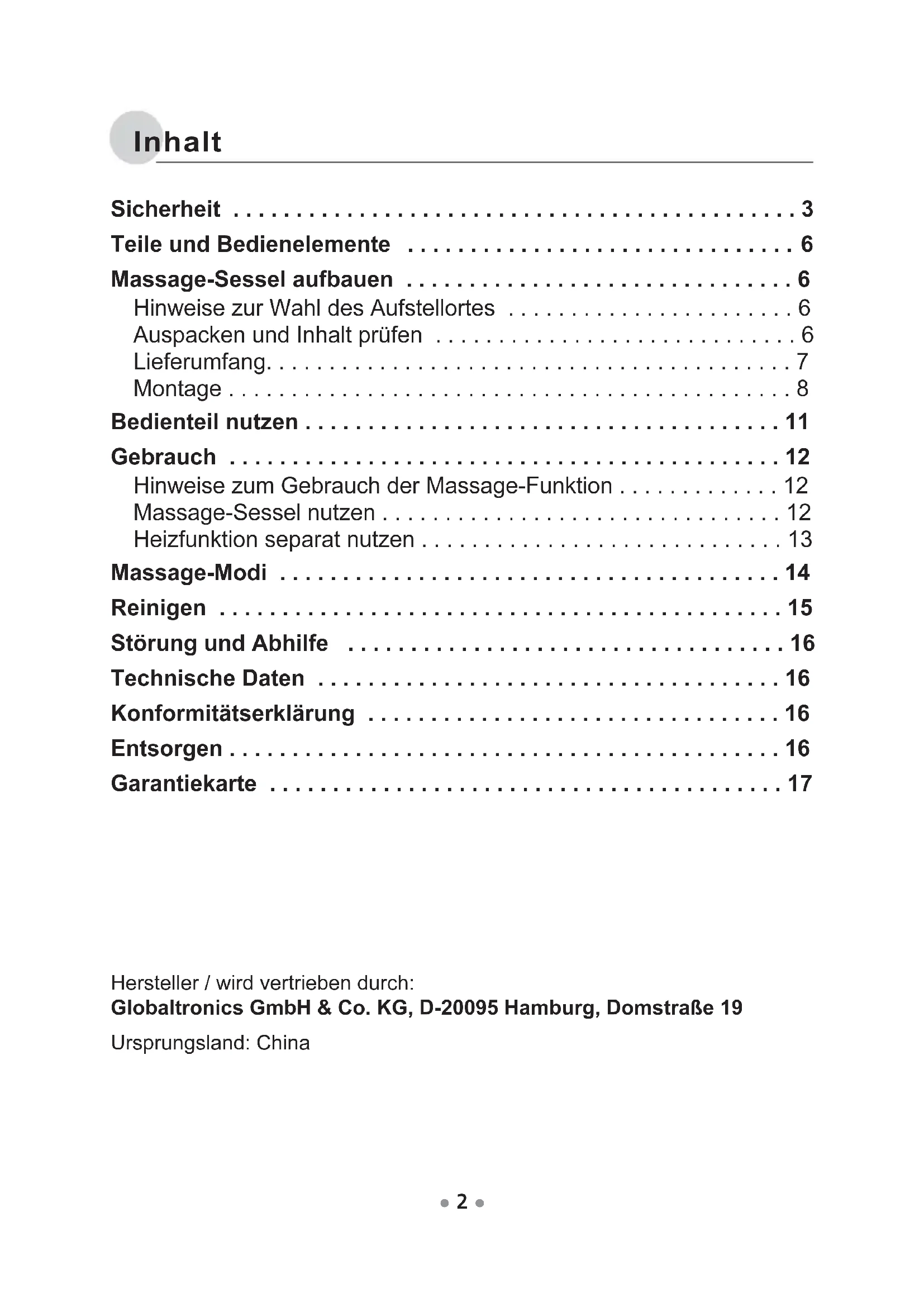 | Hersteller-/Importeurbezeichnung: Globaltronics GmbH & Co. KG | |