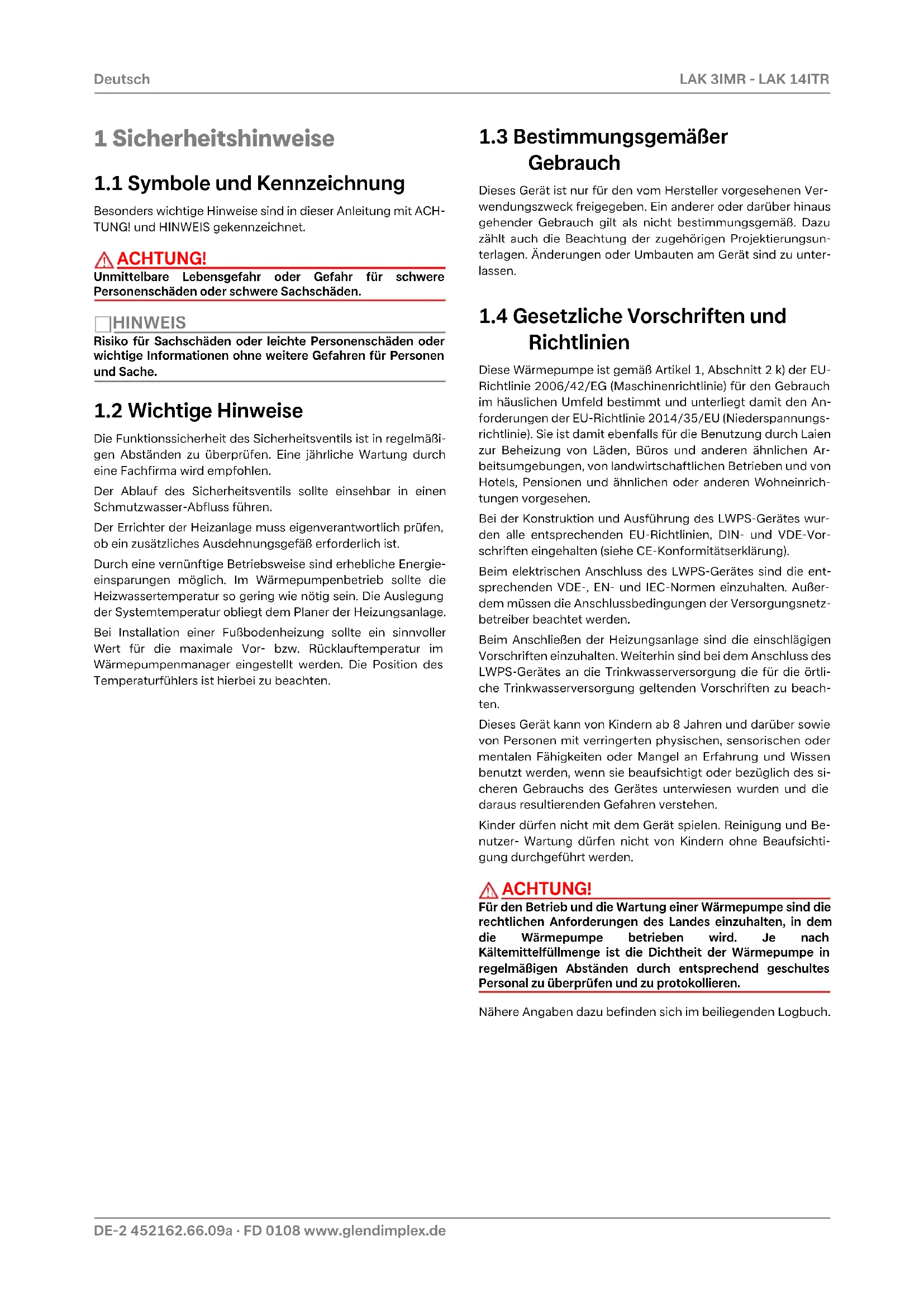 7A-XXIV 452162.66.09a · FD 0108 www.glendimplex.de Anhang · Appendix · Annexes LAK 3IMR - LAK 14ITR 5 Konformitätserklärung / Declaration of Conformity / Déclaration de conformité Die aktuelle CE-Konformitätserklärung finden sie als Download unter: You can find and download the current CE conformity declaration at: Vous pouvez télécharger la déclaration de conformité CE actuelle sous : https://glendimplex.de/lak3imr https://glendimplex.de/lak6imr https://glendimplex.de/lak9imr https://glendimplex.de/lak14imr https://glendimplex.de/lak14itrwww.glendimplex.de 452162.66.09a · FD 0108 A-XXV LAK 3IMR - LAK 14ITR Anhang · Appendix · AnnexesGlen Dimplex Deutschland Zentrale Glen Dimplex Deutschland GmbH Am Goldenen Feld 18 D-95326 Kulmbach T +49 9221 709-100 F +49 9221 709-339 dimplex@glendimplex.de www.glendimplex.de Geschäftsstelle Österreich Glen Dimplex Austria GmbH Hauptstraße 71 A-5302 Henndorf am Wallersee T +43 6214 20330 F +43 6214 203304 info@dimplex.at www.dimplex.at Office France Dimplex SAS Solutions Thermodynamiques 25A rue de la Sablière F-67590 Schweighouse Sur Moder T +33 3 88 07 18 00 F +33 3 88 07 18 01 dimplex-ST@dimplex.de www.dimplex.de/fr Verkauf und Planung Projektierung Projektierung Ihrer Projekte und Planungsunterstützung. T +49 9221 709-101 F +49 9221 709-924101 Auftragsabwicklung Bestellungen und Liefertermine T +49 9221 709-200 F +49 9221 709-924200 Mo - Do: 7:30 bis 17:00 Uhr Fr: 7:30 bis 16:00 Uhr orders@glendimplex.de Service und Technischer Support Kundendienst, Technische Unter- stützung und Ersatzteile Hilfestellung vor und nach Installation Ihrer Geräte T +49 9221 709-545 F +49 9221 709-924545 Mo - Do: 7:30 bis 16:30 Uhr Fr: 7:30 bis 15:00 Uhr service-dimplex@glendimplex.de Außerhalb der Öffnungszeiten steht Ihnen in Notfällen unsere 24// Hotline zu Verfügung Kundendienst im Internet beauftragen: www.glendimplex.de/dienstleistungen-dimplex