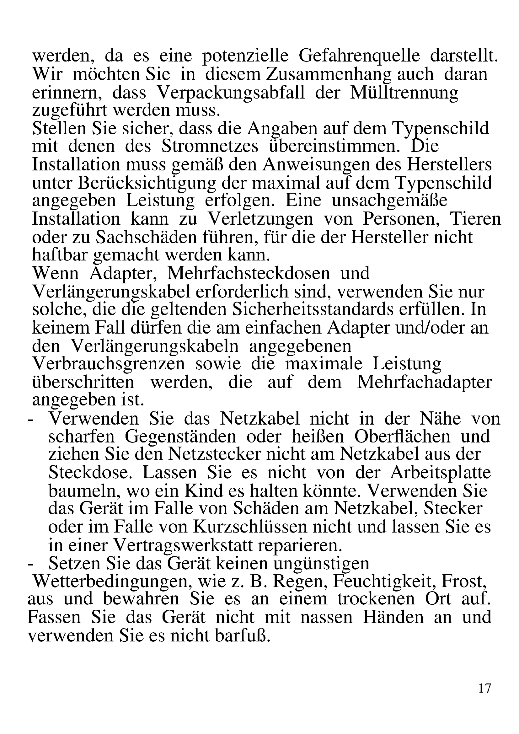 DEUTSCH: HINWEISE: Verwenden Sie das Gerät nur nach den Anweisungen in dieser Bedienungsanleitung. Jede anderweitige Verwendung gilt als unsachgemäß und gefährlich, und der Hersteller kann für Schäden haftbar gemacht werden, die durch eine unsachgemäße, falsche oder unvernünftige Verwendung verursacht werden. Stellen Sie vor der Verwendung sicher, dass das Gerät unversehrt ist. Im Zweifelsfall verwenden Sie es nicht und wenden Sie sich an den Kundendienst. Verpackungsmaterial (Plastiktüten, Styropor, Nägel, Klammern) muss für Kinder unzugänglich aufbewahrt17 werden, da es eine potenzielle Gefahrenquelle darstellt. Wir möchten Sie in diesem Zusammenhang auch daran erinnern, dass Verpackungsabfall der Mülltrennung zugeführt werden muss. Stellen Sie sicher, dass die Angaben auf dem Typenschild mit denen des Stromnetzes übereinstimmen. Die Installation muss gemäß den Anweisungen des Herstellers unter Berücksichtigung der maximal auf dem Typenschild angegeben Leistung erfolgen. Eine unsachgemäße Installation kann zu Verletzungen von Personen, Tieren oder zu Sachschäden führen, für die der Hersteller nicht haftbar gemacht werden kann. Wenn Adapter, Mehrfachsteckdosen und Verlängerungskabel erforderlich sind, verwenden Sie nur solche, die die geltenden Sicherheitsstandards erfüllen. In keinem Fall dürfen die am einfachen Adapter und/oder an den Verlängerungskabeln angegebenen Verbrauchsgrenzen sowie die maximale Leistung überschritten werden, die auf dem Mehrfachadapter angegeben ist. - Verwenden Sie das Netzkabel nicht in der Nähe von scharfen Gegenständen oder heißen Oberflächen und ziehen Sie den Netzstecker nicht am Netzkabel aus der Steckdose. Lassen Sie es nicht von der Arbeitsplatte baumeln, wo ein Kind es halten könnte. Verwenden Sie das Gerät im Falle von Schäden am Netzkabel, Stecker oder im Falle von Kurzschlüssen nicht und lassen Sie es in einer Vertragswerkstatt reparieren. - Setzen Sie das Gerät keinen ungünstigen Wetterbedingungen, wie z. B. Regen, Feuchtigkeit, Frost, aus und bewahren Sie es an einem trockenen Ort auf. Fassen Sie das Gerät nicht mit nassen Händen an und verwenden Sie es nicht barfuß.18 - Dieses Gerät kann von Kindern ab 8 Jahren und von Personen mit eingeschränkten körperlichen, sensorischen oder geistigen Fähigkeiten oder mangelnder Erfahrung und Kenntnissen verwendet werden, wenn sie beaufsichtigt oder instruiert wurden, um das Gerät sicher zu verwenden und die damit verbundenen Gefahren zu verstehen. Kinder dürfen nicht mit dem Gerät spielen. Reinigung und Benutzerwartung dürfen nicht von Kindern ohne Aufsicht durchgeführt werden. - Kinder dürfen nicht mit dem Gerät spielen. - Bewahren Sie das Gerät und sein Netzanschluss außerhalb der Reichweite von Kinder unter 8 Jahren. Wenn das Netzkabel beschädigt ist oder wenn ein Fehler vorliegt, darf das Gerät nicht manipuliert werden. Jede Reparatur muss vom Hersteller oder seinem technischen Kundendienst oder in jedem Fall von einer Person mit ähnlicher Qualifikation durchgeführt werden, um jegliches Risiko zu vermeiden. Die Nichtbeachtung der vorstehenden Bestimmungen kann die Sicherheit des Geräts beeinträchtigen und die Garantiebedingungen ungültig machen. Dieses Gerät ist nur für den Hausgebrauch oder gleichwertiges bestimmt, in Situationen wie bspw.: Kantinen in kleinen Firmen oder ähnliche Arbeitsumgebungen, von Kunden in Hotels, Motels oder andere Art von touristische Unterkunft, wie ländlicher oder Wohn –Tourismus. Das Gerät darf nicht mit einer Zeitschaltuhr oder mit einem separaten Fernwirksystem betrieben warden Führen Sie vor jedem Gebrauch das Netzkabel aus. Setzen Sie das Produkt keinen Stößen aus, es könnte beschädigt werden. Verwenden Sie nur originale und kompatible Teile und Zubehör.19 ALLGEMEINE HINWEISE WARNUNG: Verwenden Sie den Haartrockner nicht in der Badewanne, unter der Dusche und in der Duschkabine. Falls der Haartrockner ins Wasser fällt, nicht anfassen und ziehen Sie sofort der Netzstecker. Verhindern Sie Wasserspritzen. Falls Sie eines dieser Probleme feststellen, bevor sie es verwenden, nehmen Sie den Haartrockner zu einen autorisierten Service-Center; denselben darf nur von qualifiziertem Fachpersonal überprüft werden. Stellen Sie den Trockner nur auf hitzebeständigen Oberflächen und weg von Kleidung, Papier oder brennbaren Flüssigkeiten. Die Lüftungsöffnungen nicht verhindern, da diese die Motoreinheit beschädigen können. Achten Sie darauf, lassen Sie Ihre Haare nicht zu nahe an diesen Öffnungen, weil der Trockner sie saugen und verbrennen kann. Lassen Sie das Gerät nie unbewacht, während es läuft. Im Falle von Überhitzung, durch übermäßigen Gebrauch oder durch zufällige Blockierung der Entlüftungsöffnungen, sperrt der Sicherheitsthermostat den Motoranlauf. Warten Sie bis die vollständige Abkühlung des Motors bis Sie es neu in Betrieb setzen können Wenn der Trockner in Betrieb ist, wird die Lüftungsöffnung sehr warm. Berühren Sie sie nicht, da diese schwere Verbrennungen verursachen kann. Benutzen Sie das Gerät nie als Heizer. Das Netzkabel nicht einwickeln, wenn das Gerät in Betrieb ist. Nach jedem Gebrauch, lassen Sie das Gerät abkühlen, bevor Sie es wegräumen. Wenn das Gerät im Badezimmern genutzt wird, ist nach dem Gebrauch der Netzstecker zuziehen, weil die Nähe20 von Wasser eine Gefahr darstellt, auch wenn das Gerät ausgeschaltet ist. Um einen besseren Schutz zu gewährleisten wird die Installation einer Fehlerstromschutzeinrichtung mit einem nominalen Auslösestrom von maximal 30 mA, im Badezimmer Stromkries empfohlen. Fragen Sie Ihren Installateur. PH02