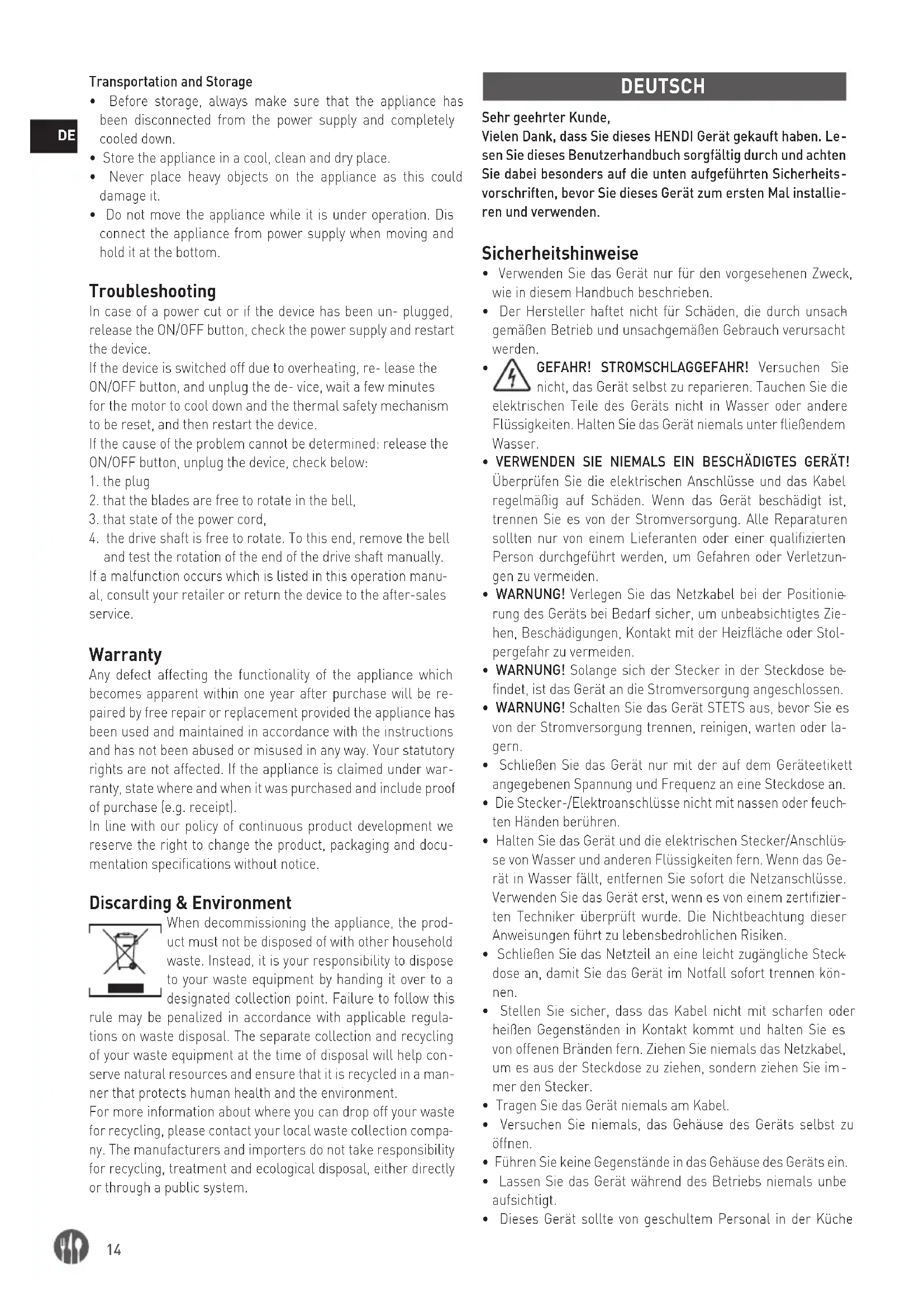 Finden Sie kostenlos die Bedienungsanleitung des Geräts 222393 Hendi als PDF.