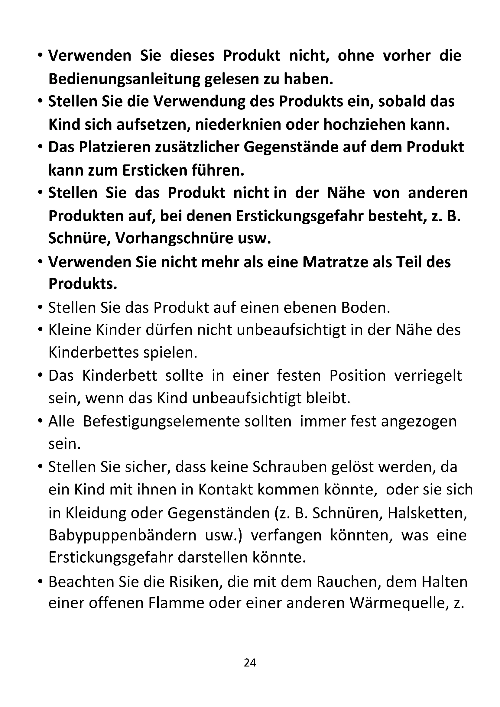 - Das Platzieren zusätzlicher Gegenstände auf dem Produkt kann zum Ersticken führen.