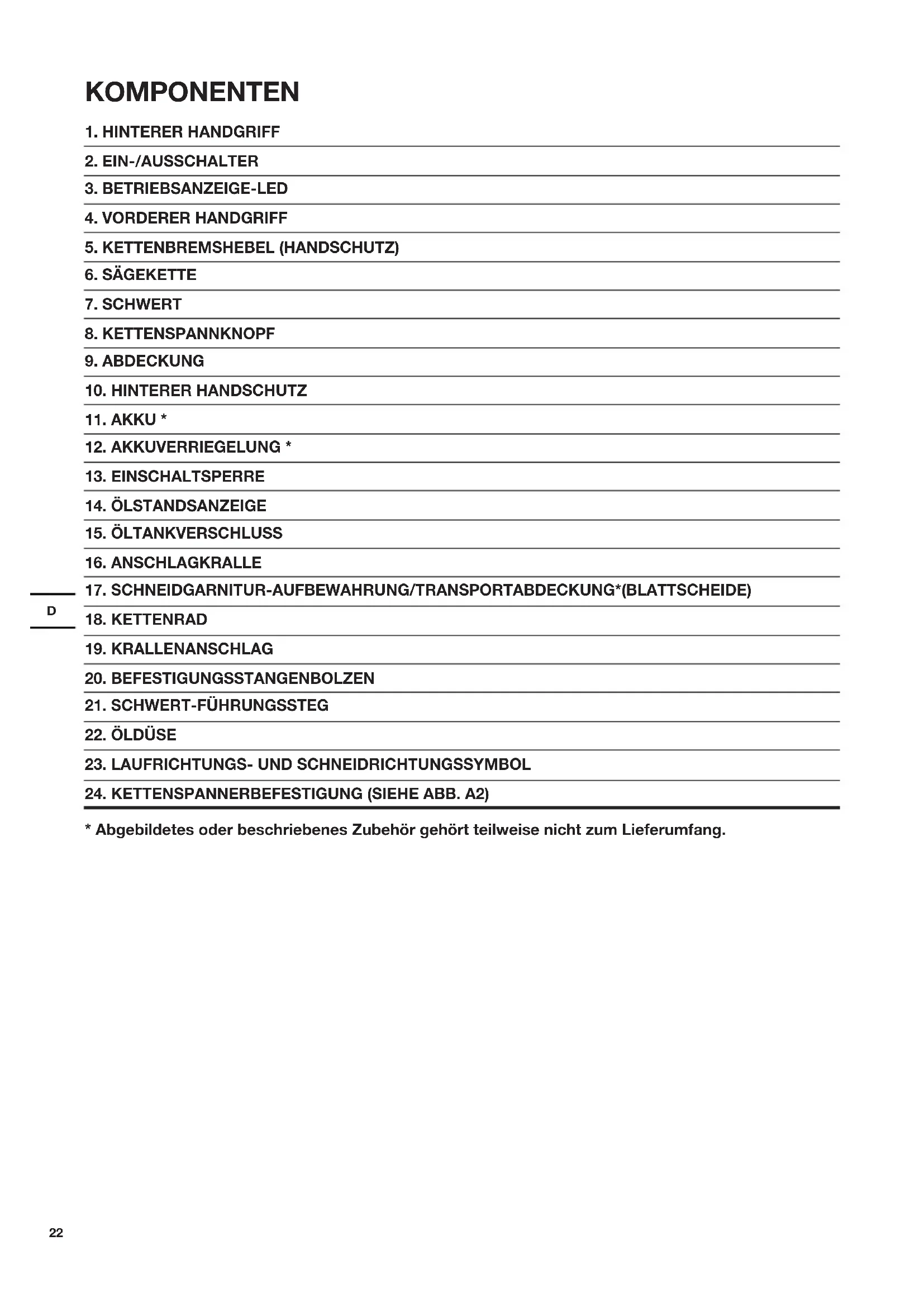 - Abgebildetes oder beschriebenes Zubehör gehört teilweise nicht zum Lieferumfang.23