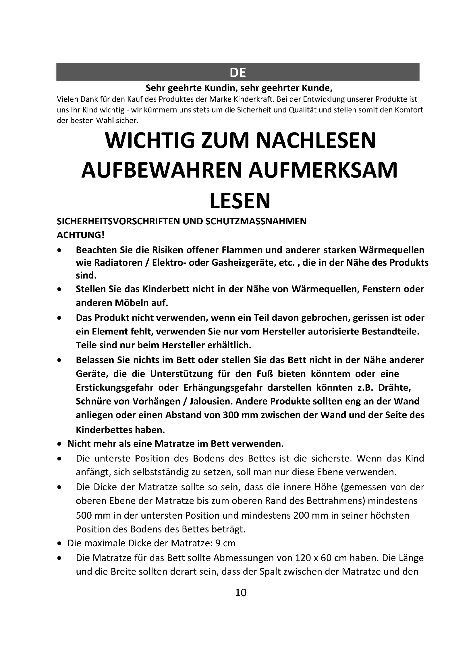 Matrace10 Sehr geehrte Kundin, sehr geehrter Kunde, Vielen Dank für den Kauf des Produktes der Marke Kinderkraft. Bei der Entwicklung unserer Produkte ist uns Ihr Kind wichtig - wir kümmern uns stets um die Sicherheit und Qualität und stellen somit den Komfort der besten Wahl sicher.