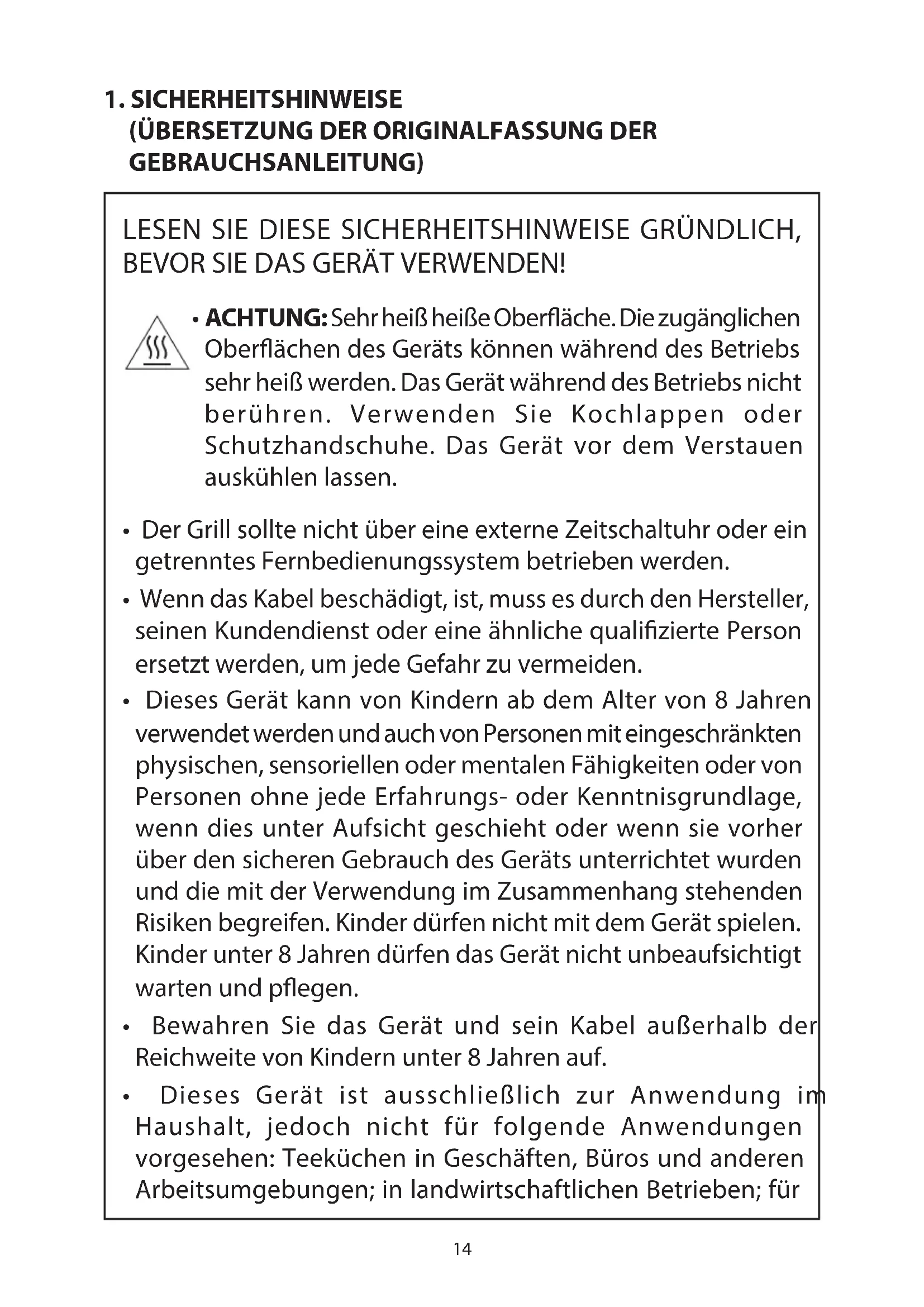 1. SICHERHEITSHINWEISE