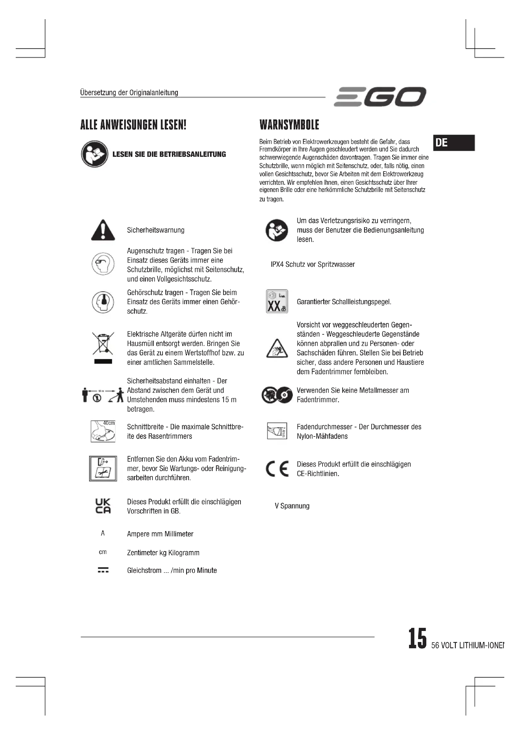 ST1610ET - Grasenschneider EGO - Kostenlose Bedienungsanleitung