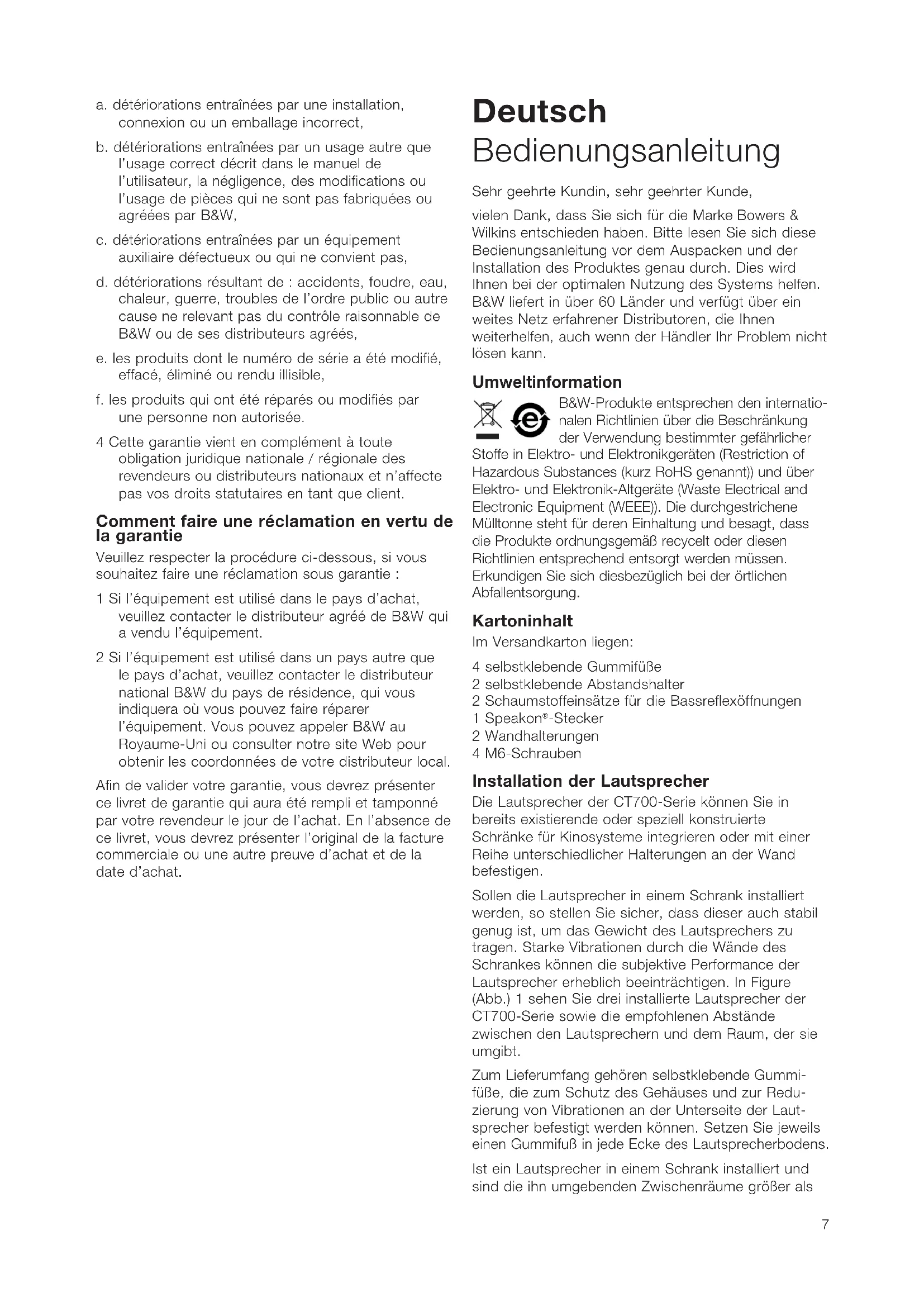 CT7.3 LCRS - Lautsprecher BOWERS & WILKINS - Kostenlose Bedienungsanleitung