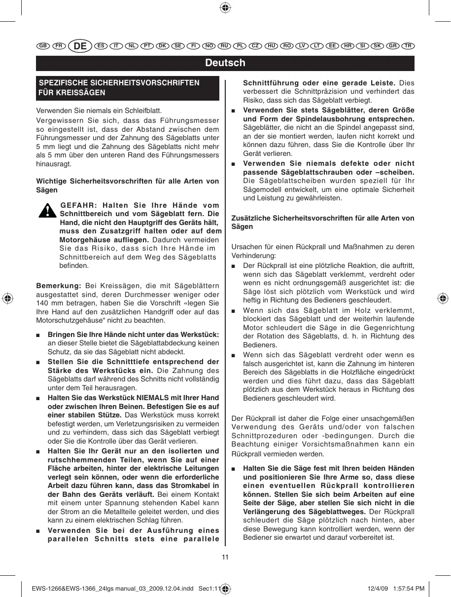 SPEZIFISCHE SICHERHEITSVORSCHRIFTEN FÜR KREISSÄGEN