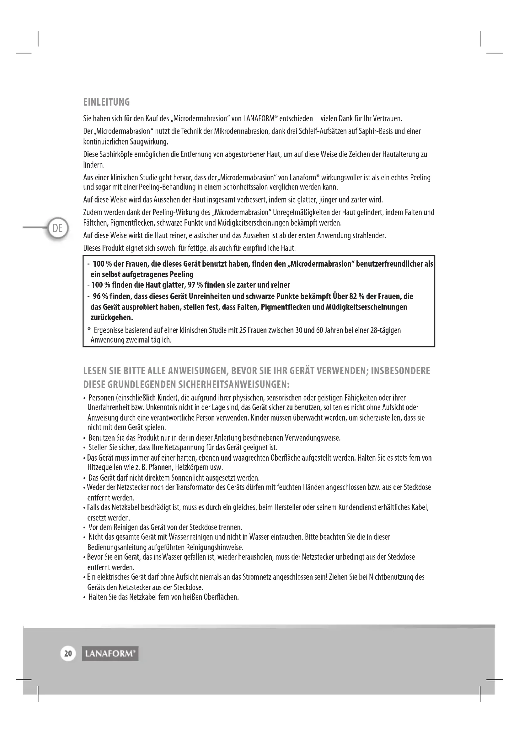 BEDIENUNGSANLEITUNG Microdermabrasion LANAFORM