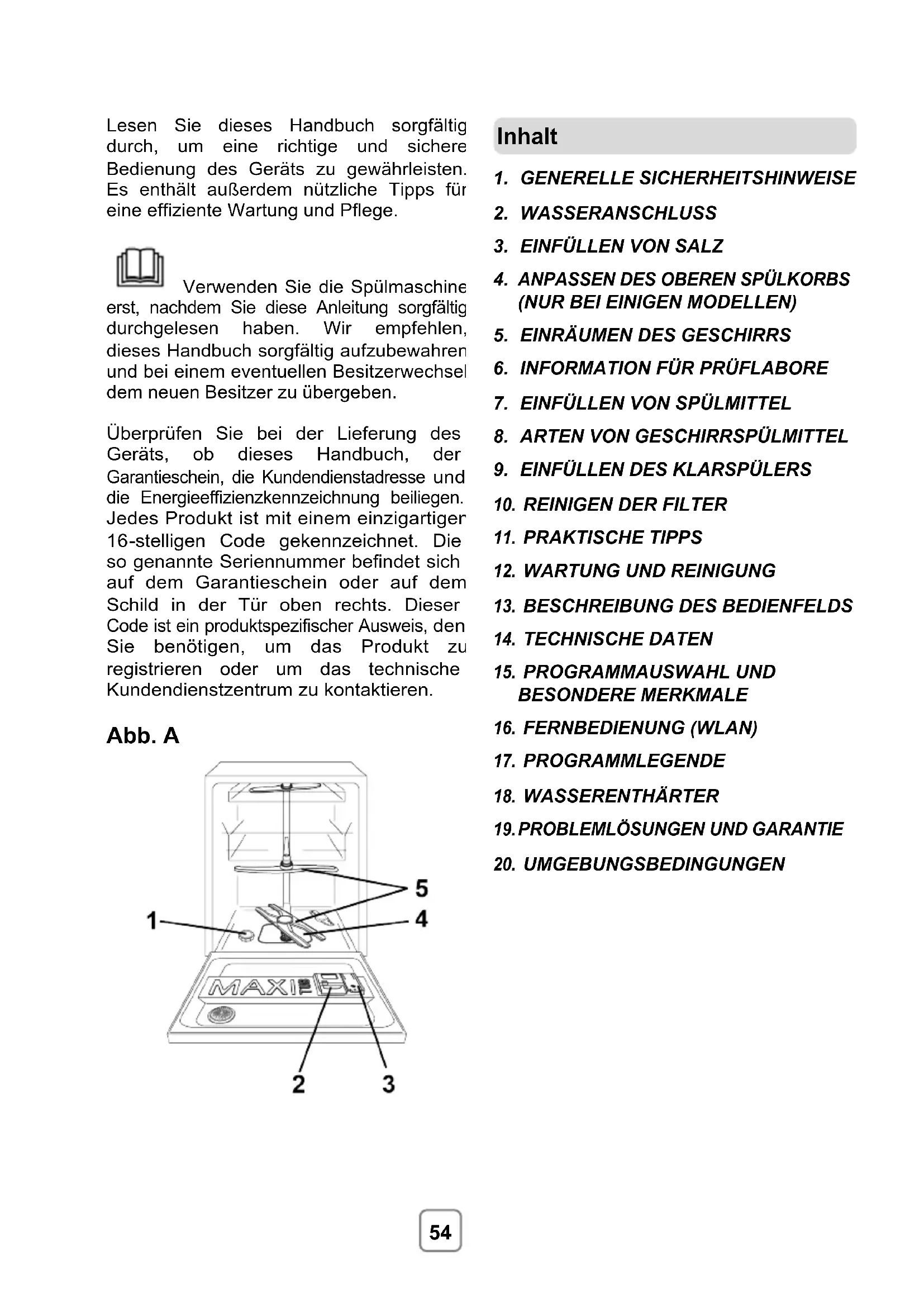 Verwenden Sie die Spülmaschine erst, nachdem Sie diese Anleitung sorgfältig durchgelesen haben. Wir empfehlen, dieses Handbuch sorgfältig aufzubewahren und bei einem eventuellen Besitzerwechsel dem neuen Besitzer zu übergeben.