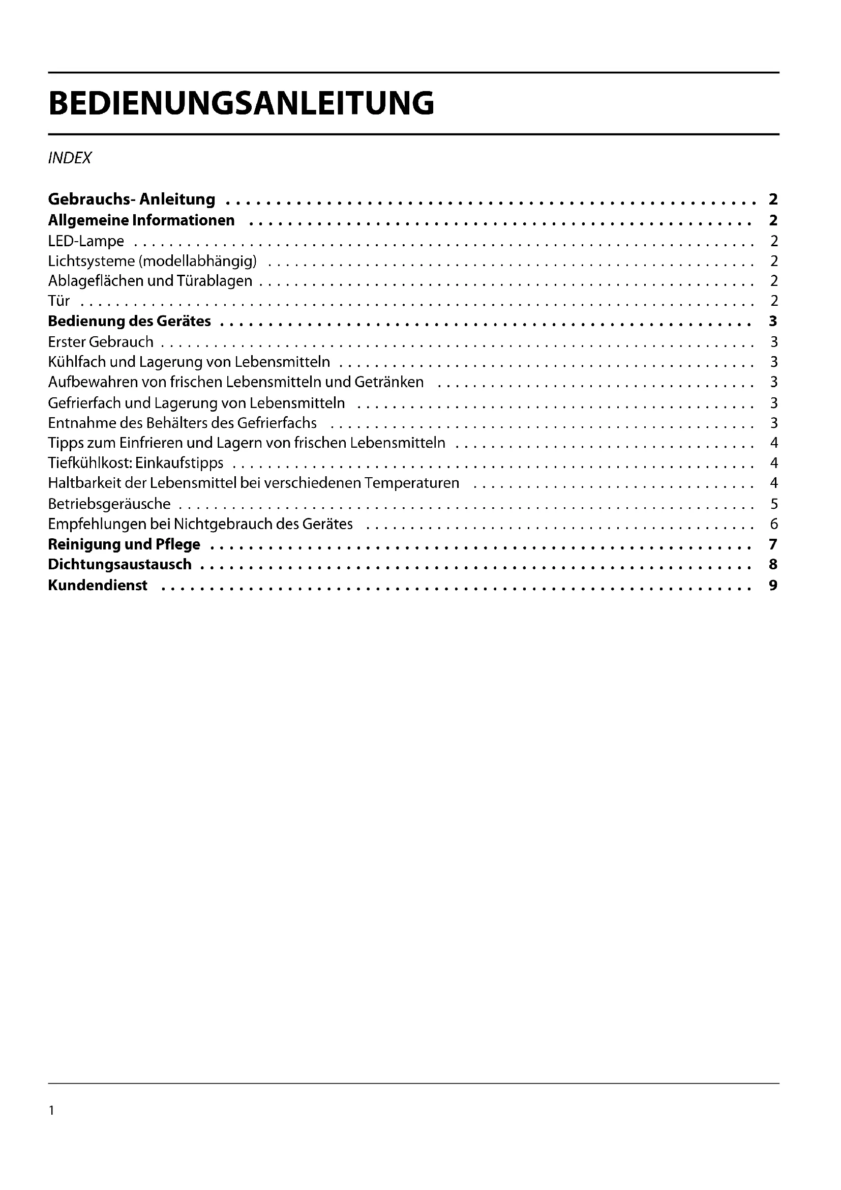 - Gefrierfach und Lagerung von Lebensmitteln p. 3