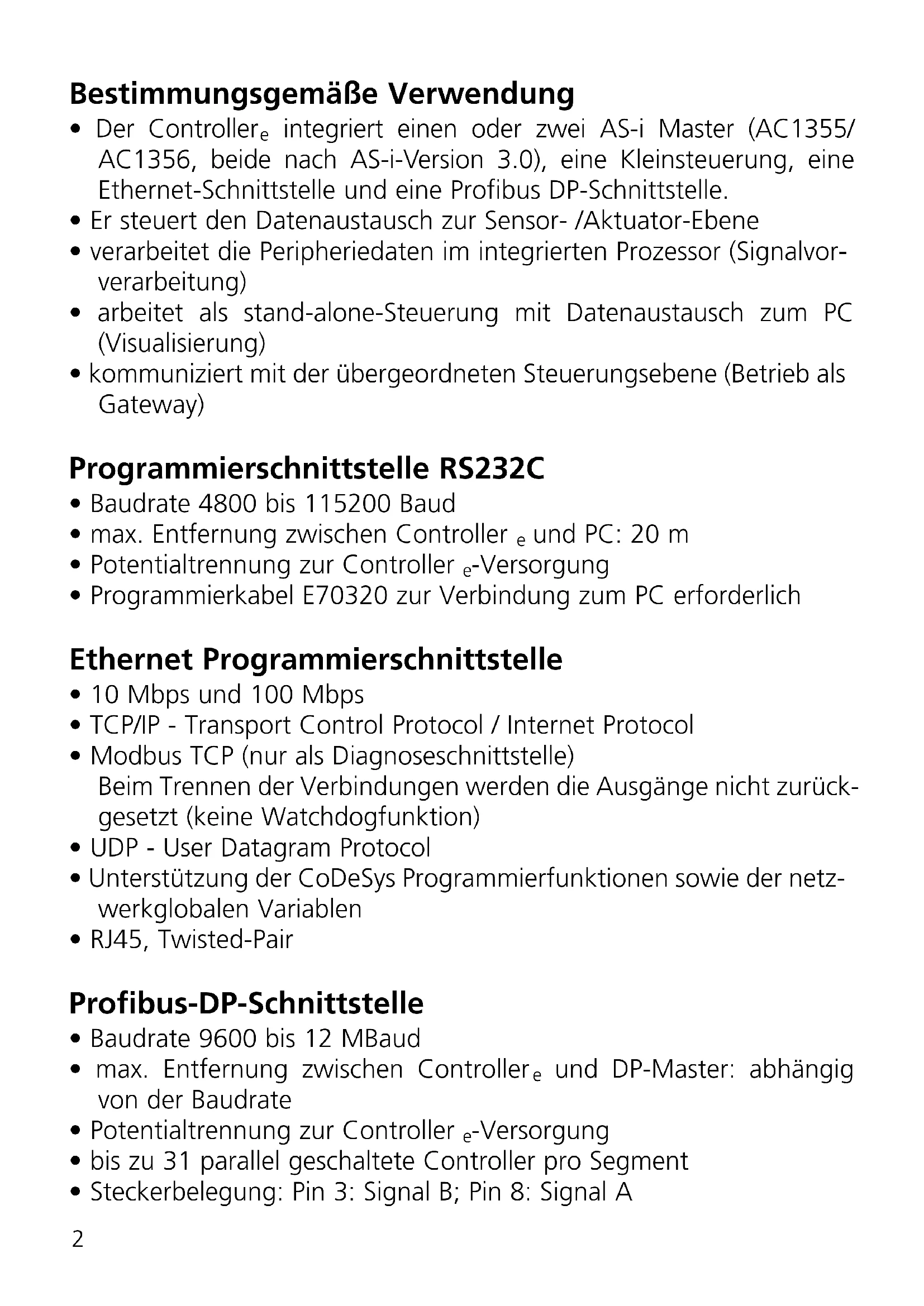 integriert einen oder zwei AS-i Master (AC1355/ AC1356, beide nach AS-i-Version 3.0), eine Kleinsteuerung, eine Ethernet-Schnittstelle und eine Profibus DP-Schnittstelle.