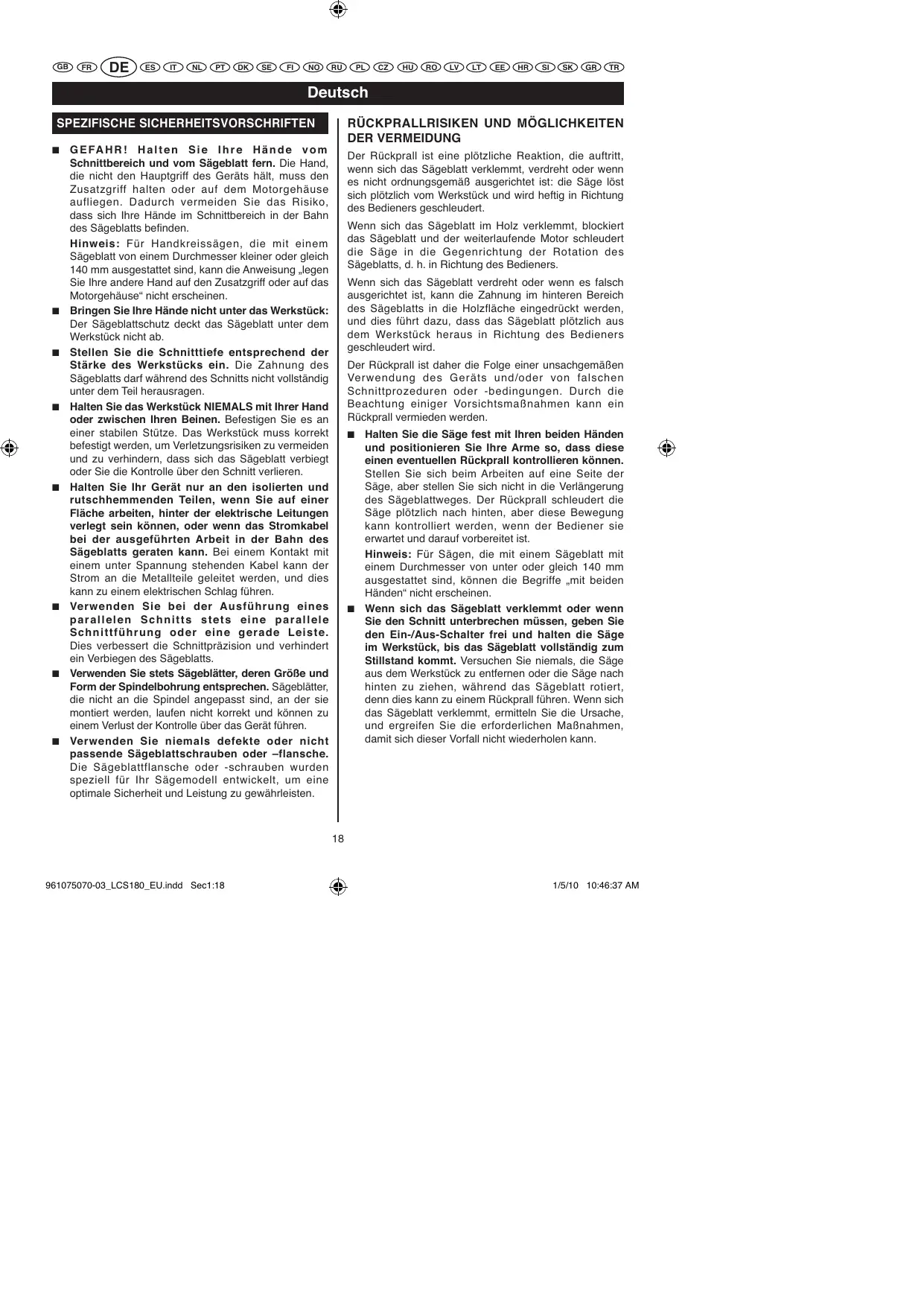 Der Rückprall ist davon die Folge einer unsachgemäßen Verwendung des Gerats und/oder von falschen Schnittprozeden oder -bedingungen. Durch die Beachtung einiger Vorsichtsmaßnahmen kann ein Rückprall vermieden werden.