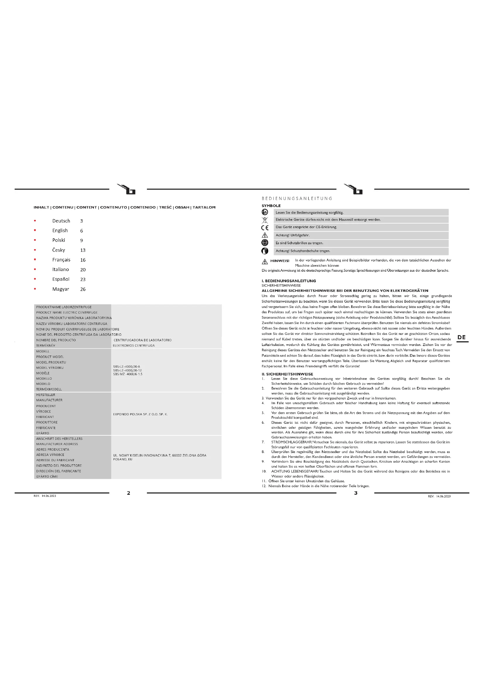 SYMBOLE INHALT | CONTENU | CONTENT | CONTENUTO | CONTENIDO | TREŚĆ | OBSAH | TARTALOM Die originale Anweisung ist die deutschsprachige Fassung. Sonstige Sprachfassungen sind Übersetzungen aus der deutschen Sprache.