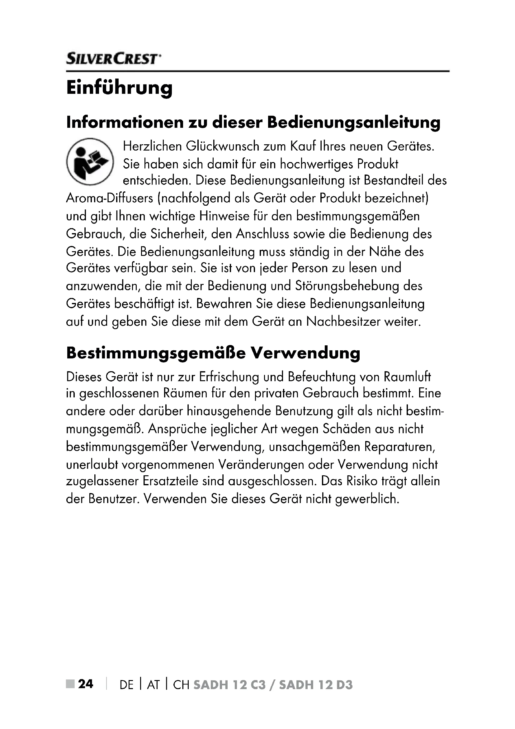 SADH 12 D3 - Aromadiffusor SILVERCREST - Kostenlose Bedienungsanleitung