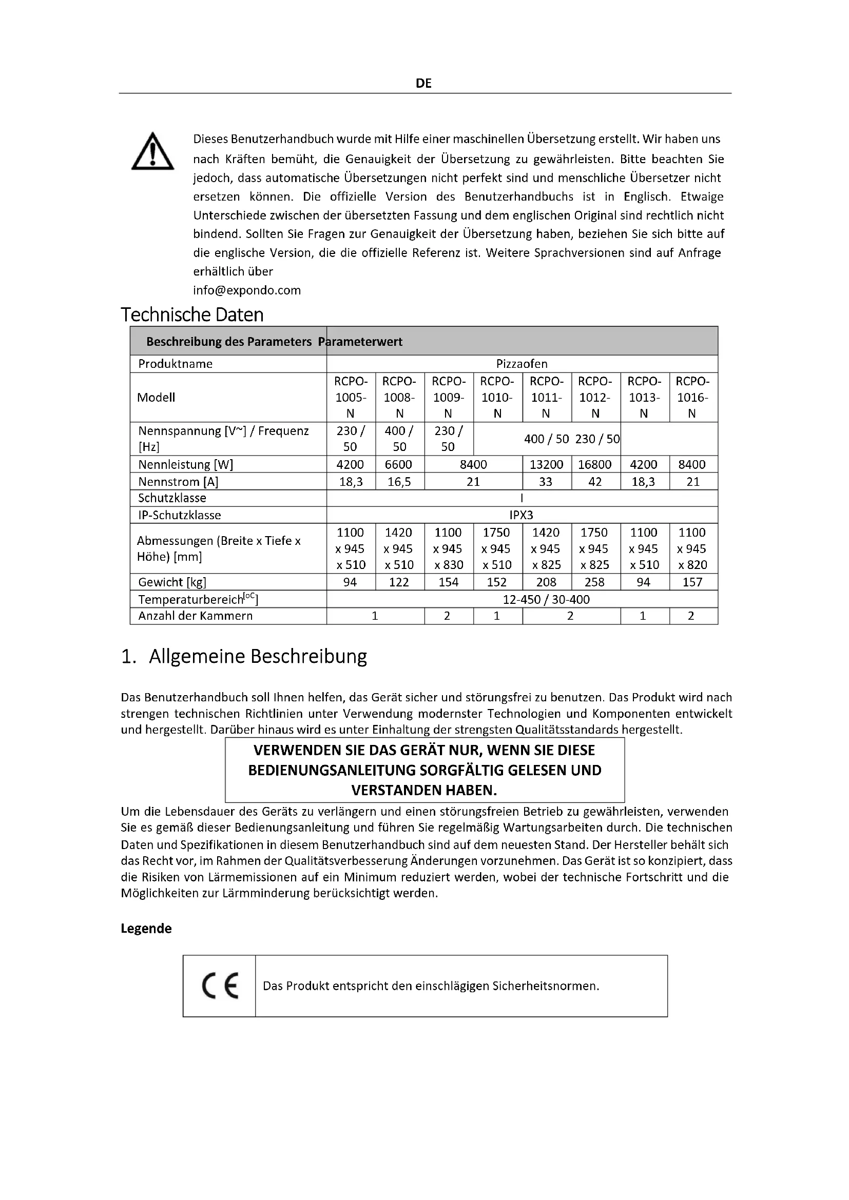 RCPO1005N - Pizzaofen Royal Catering - Kostenlose Bedienungsanleitung