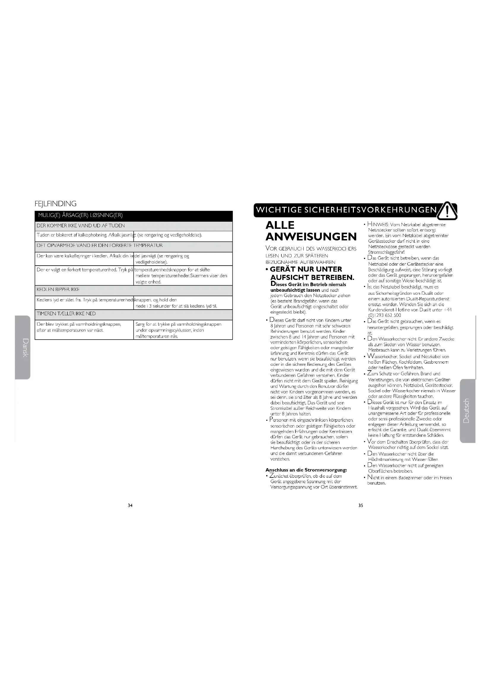 G3534 Deutsch Dansk ALLE ANWEISUNGEN Vor gebrauch des wasserkochers lesen und zur späteren bezugnahme aufbewahren