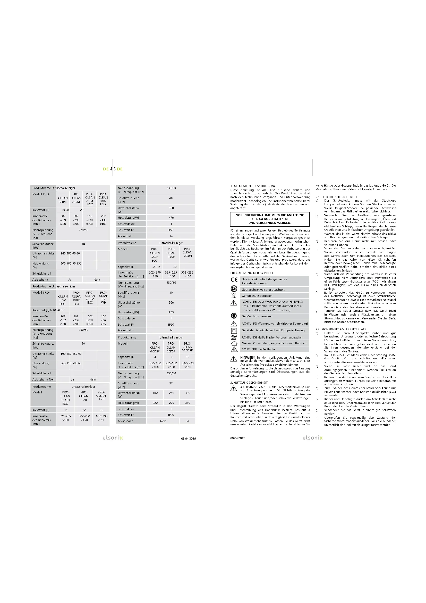 Laden Sie die Anleitung für Ihr Ultraschallreiniger kostenlos im PDF-Format! Finden Sie Ihr Handbuch PROCLEAN 15.0H ECO - Ulsonix und nehmen Sie Ihr elektronisches Gerät wieder in die Hand. Auf dieser Seite sind alle Dokumente veröffentlicht, die für die Verwendung Ihres Geräts notwendig sind. PROCLEAN 15.0H ECO von der Marke Ulsonix.