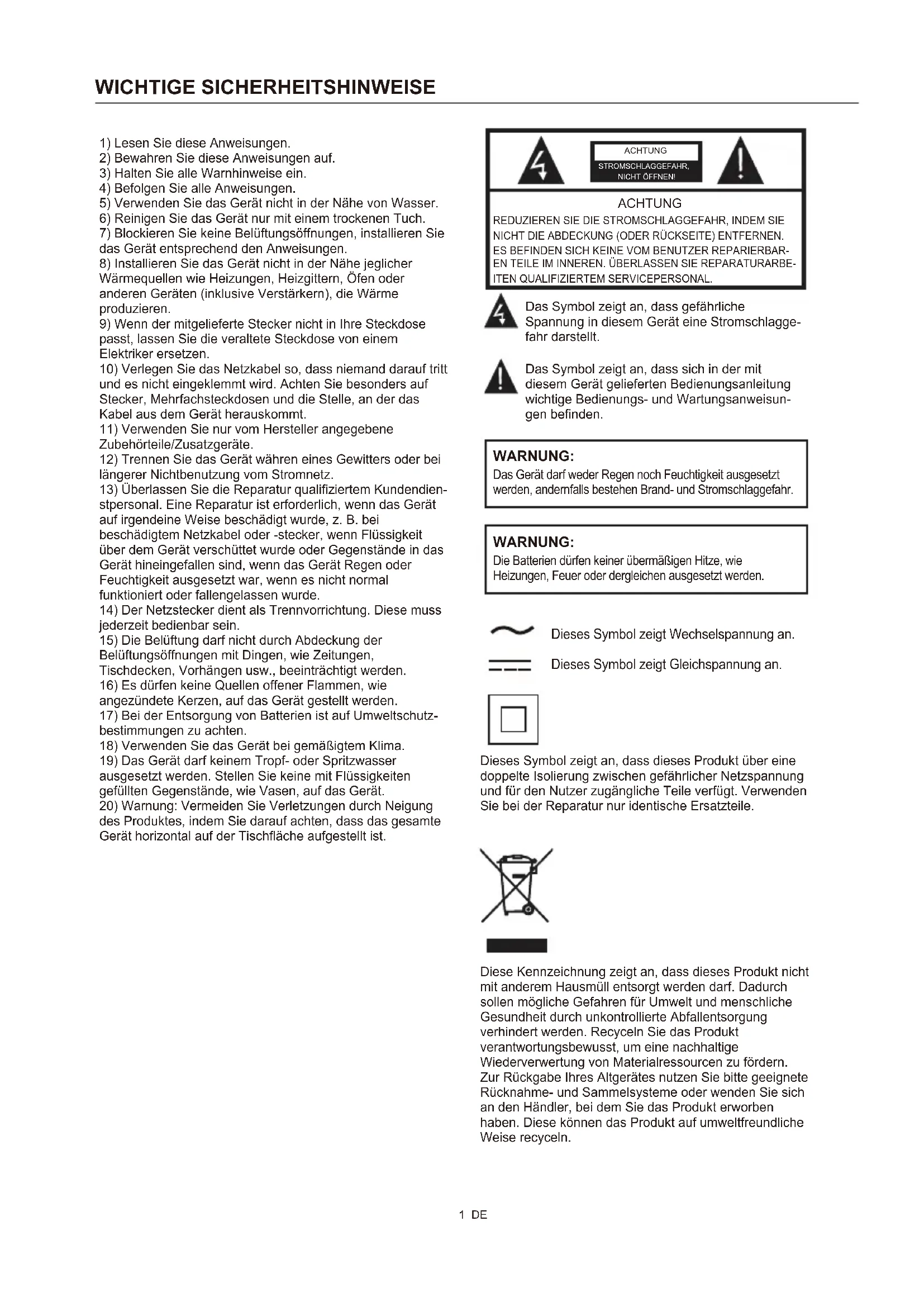 2) Bewahren Sie diese Anweisungen auf.
