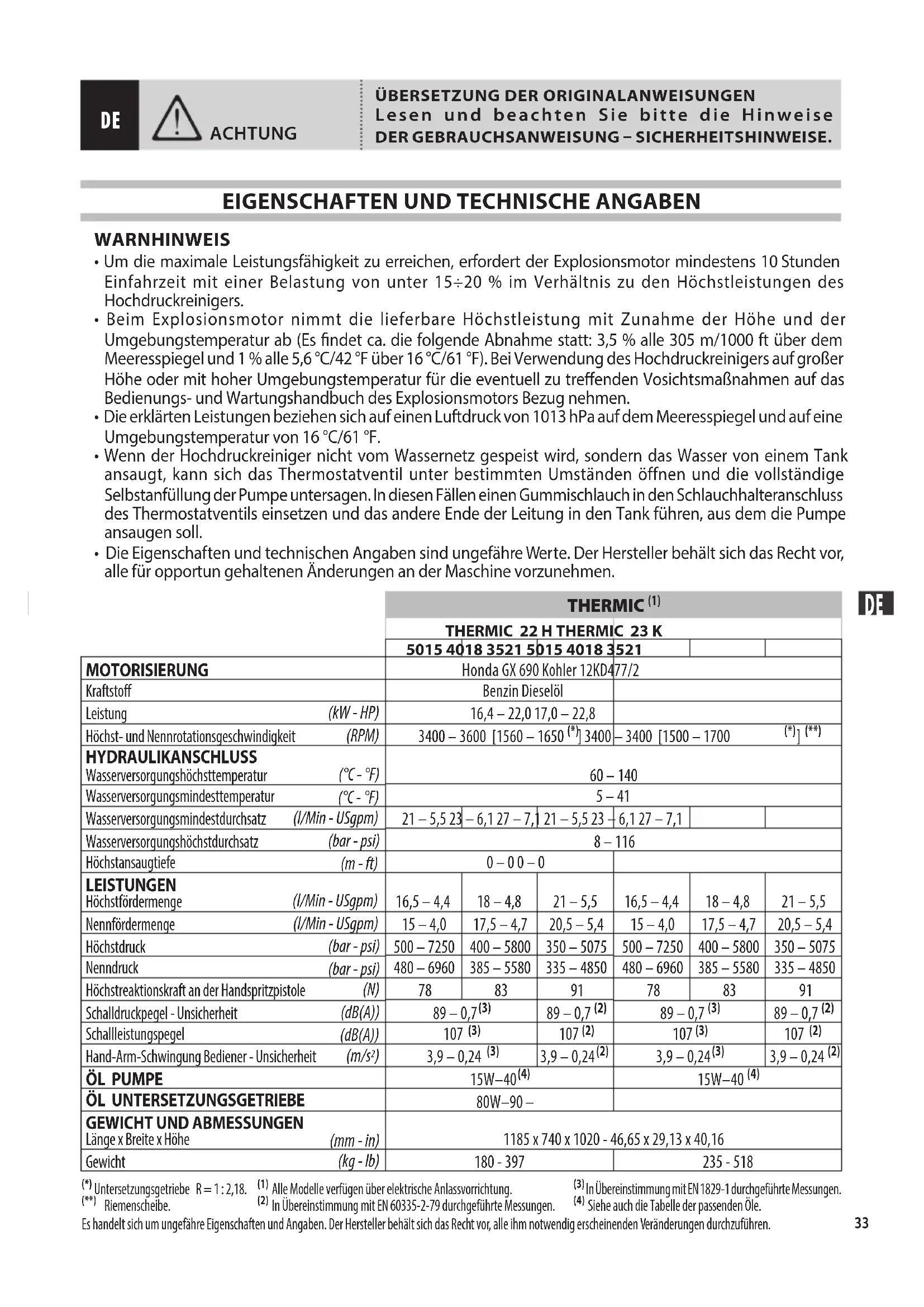 - Die Eigenschaften und technischen Angaben sind ungefähre Werte. Der Hersteller behält sich das Recht vor, alle für opportun gehaltenen Änderungen an der Maschine vorzunehmen. THERMIC (1)