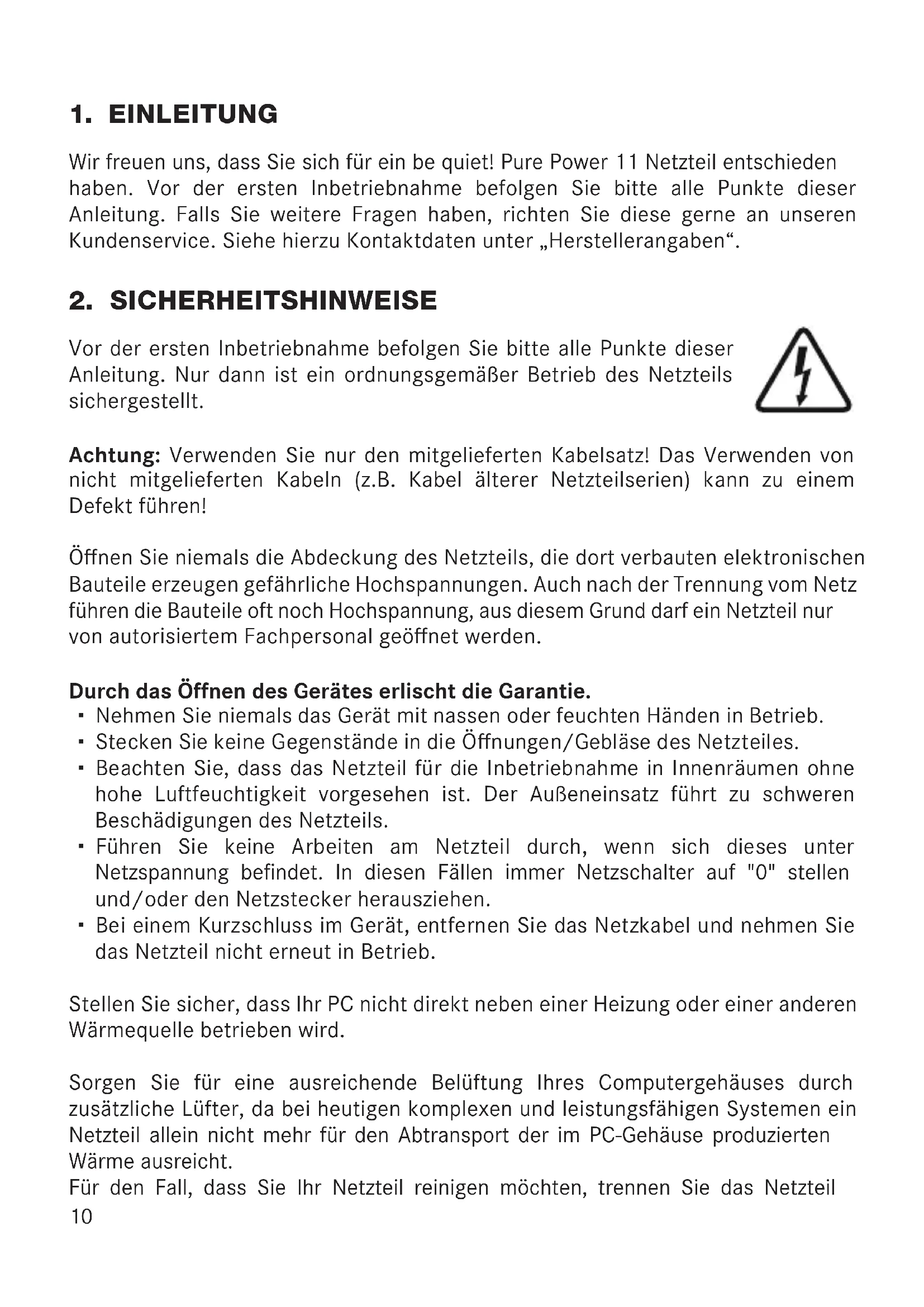 Wir freiuen uns, dass Sie sich für ein be quiet! Pure Power 11 Netzteil entschieden haben. Vor der ersten Inbetriebnahme befolgen Sieitte alle Punkte dieser Anleitung. Falls Sie weitere Fragen haben, richten Sie diese fremne an unseren Kundenservice. Siehe hierzu Kontaktdaten unter „Herstellerangaben".