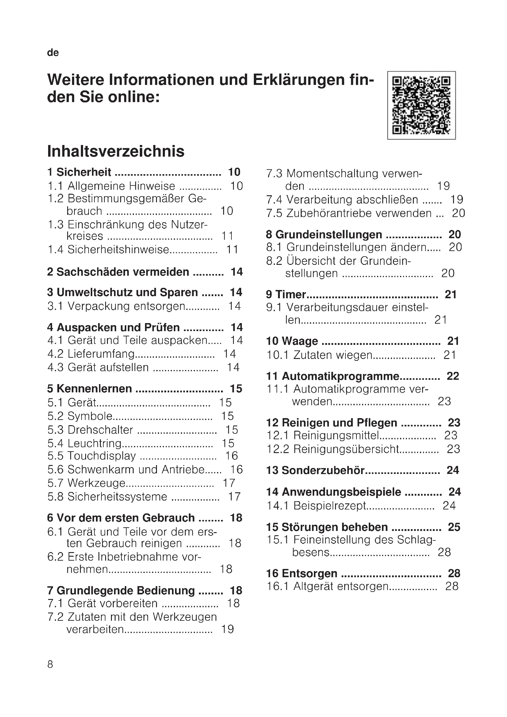 Weitere Informationen und Erklärungen fin- den Sie online: Inhaltsverzeichnis 1 Sicherheit ..................................10
