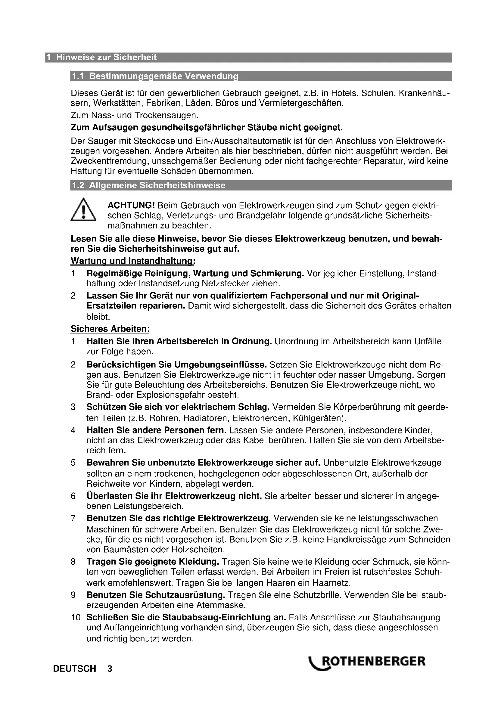 Finden Sie kostenlos die Bedienungsanleitung des Geräts RODIA DRY CLEANER 1200 ROTHENBERGER als PDF.