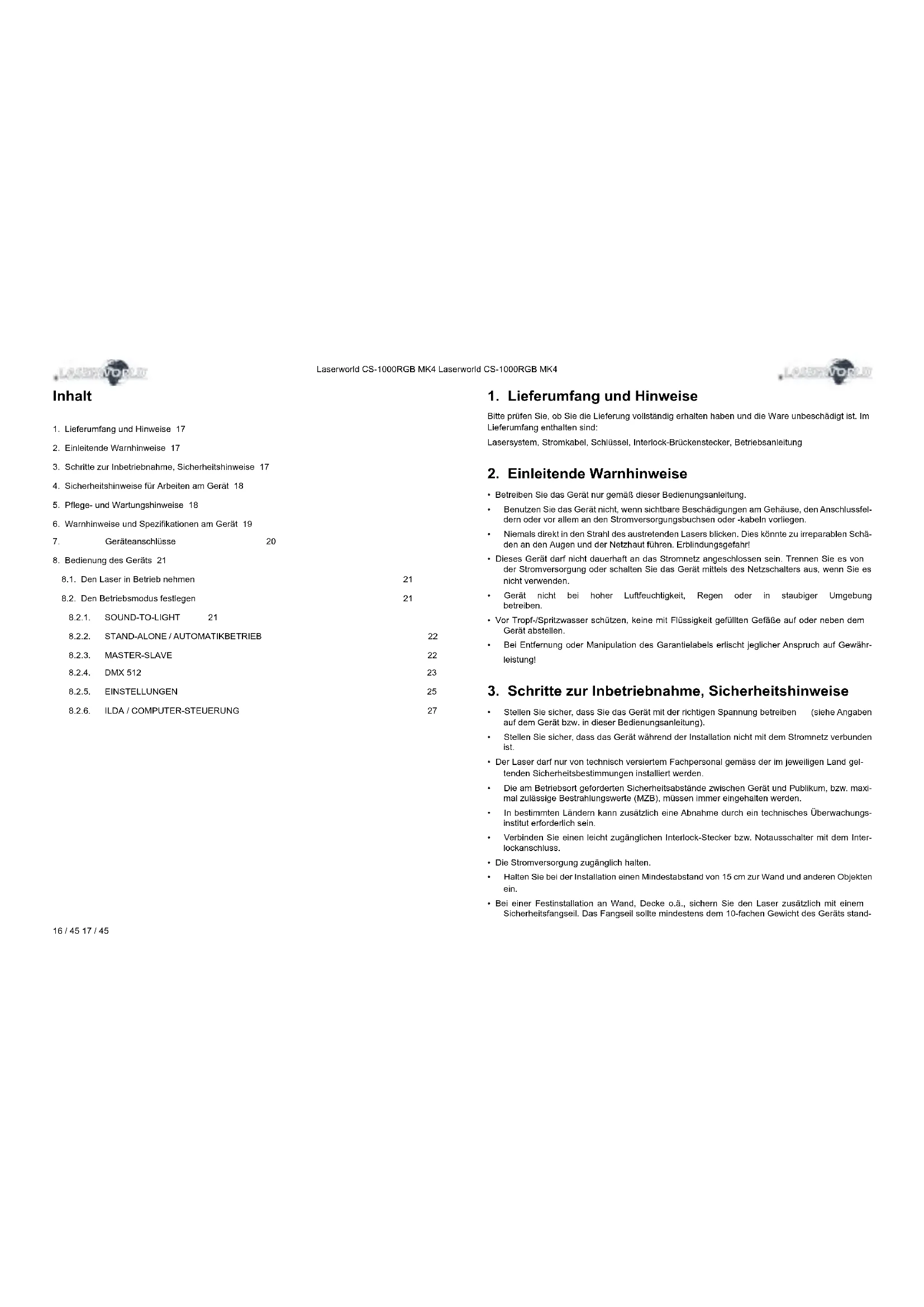Finden Sie kostenlos die Bedienungsanleitung des Geräts CS1000RGB Laserworld als PDF.