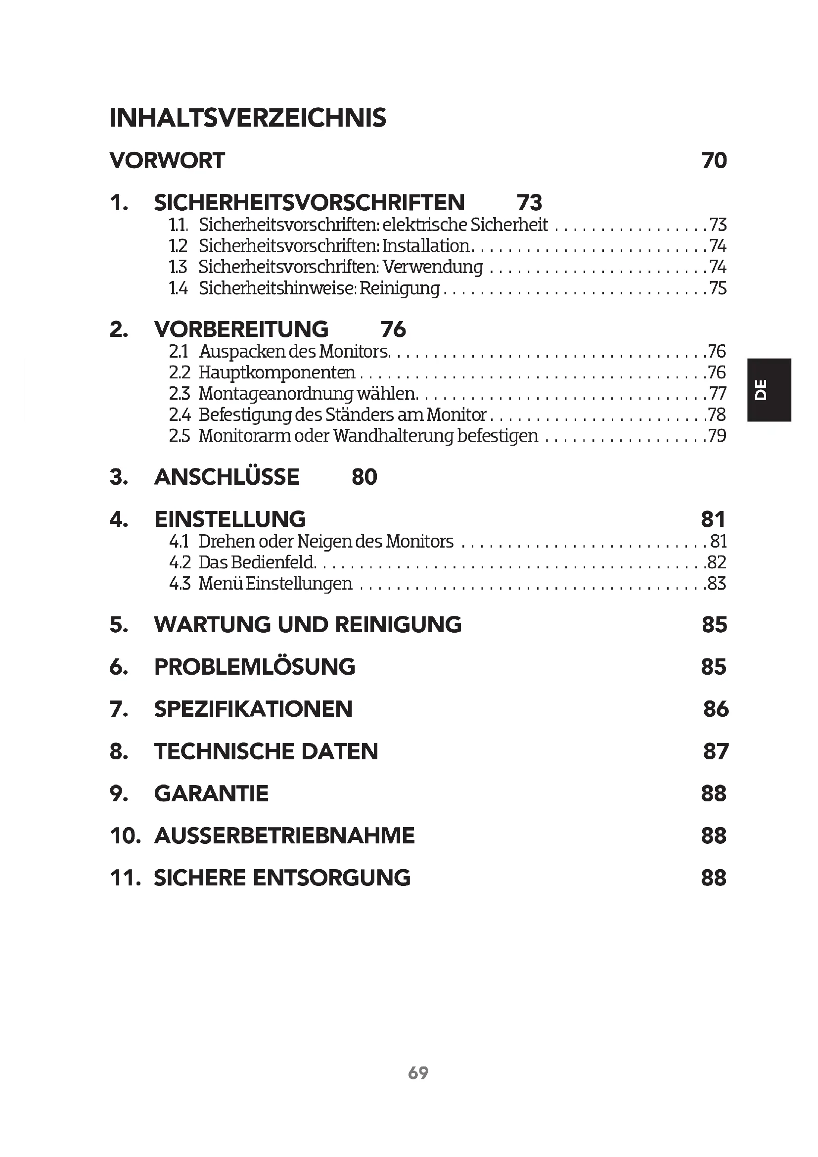 2.5 Monitorarm oder Wandhalterung befestigen . . . . . . . . . . . . . . . . . .79