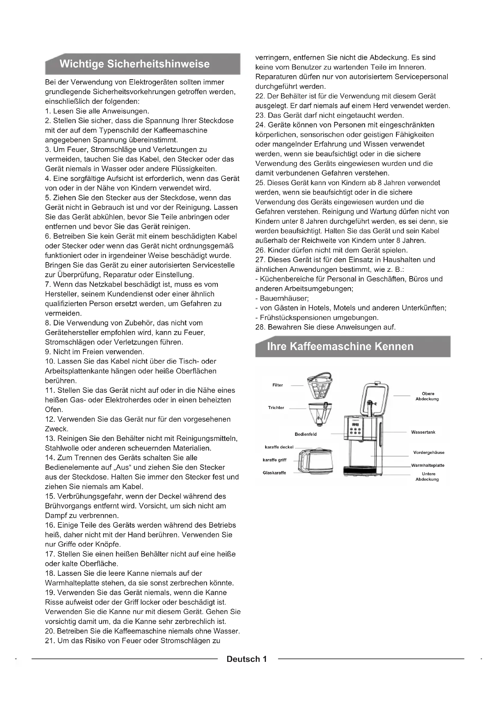 coffees are used.Deutsch 1 Wichtige Sicherheitshinweise Bei der Verwendung von Elektrogeräten sollten immer grundlegende Sicherheitsvorkehrungen getroffen werden, einschließlich der folgenden: