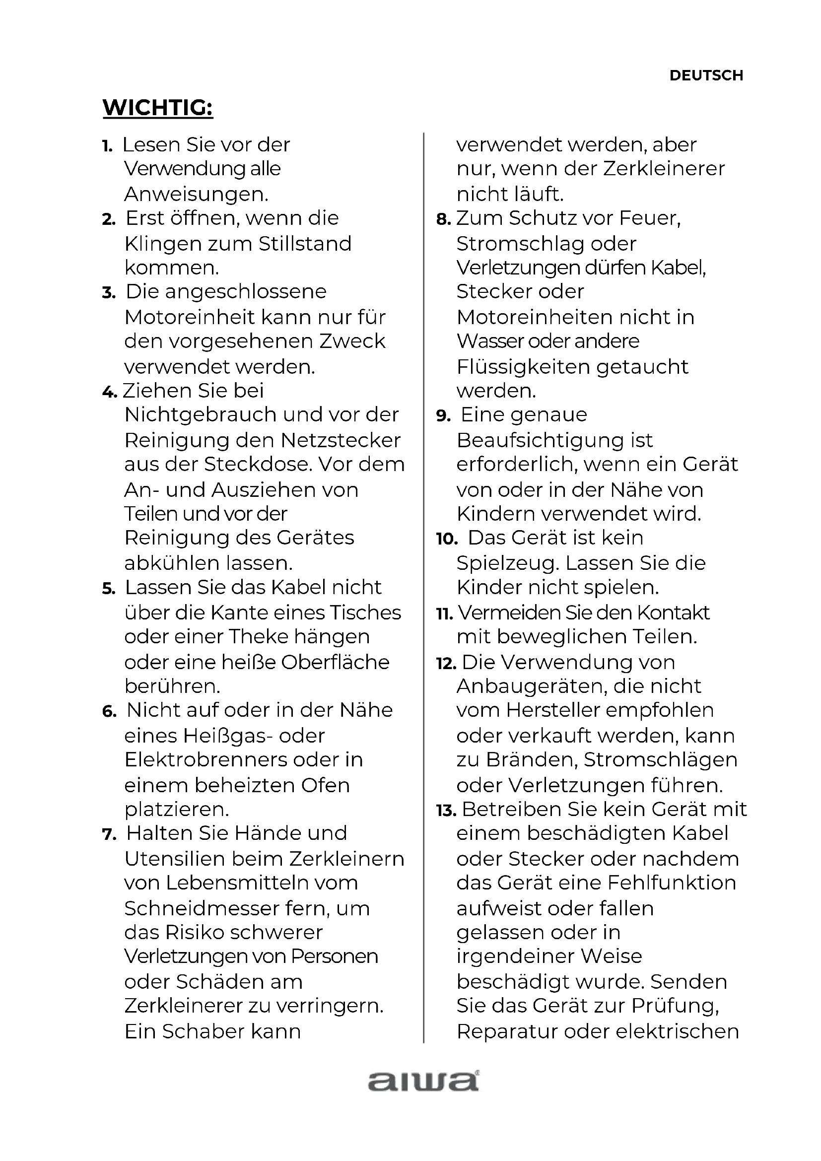13. Betreiben Sie kein Gerät mit