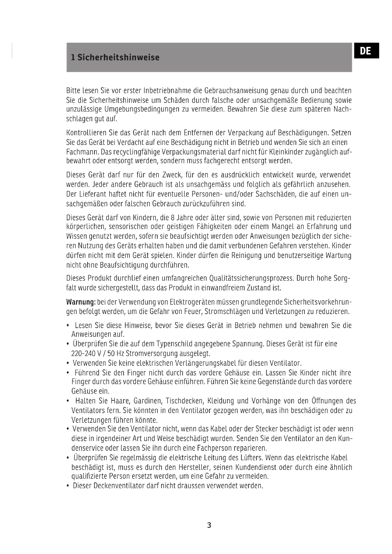 - Dieser Deckenventilator darf nicht draussen verwendet werden. DE4