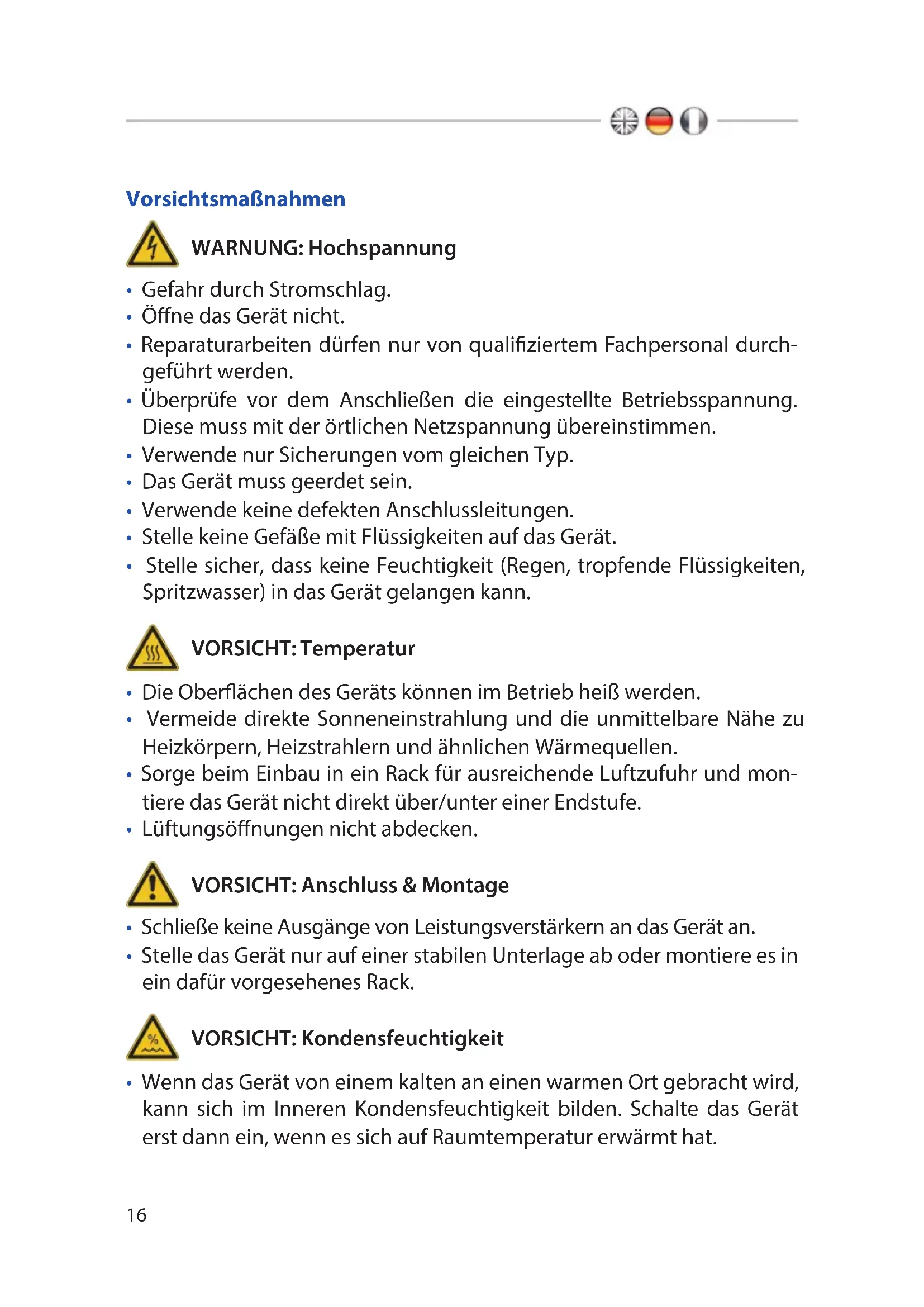 - Schließe keine Ausgänge von Leistungsverstärkern an das Gerät an.