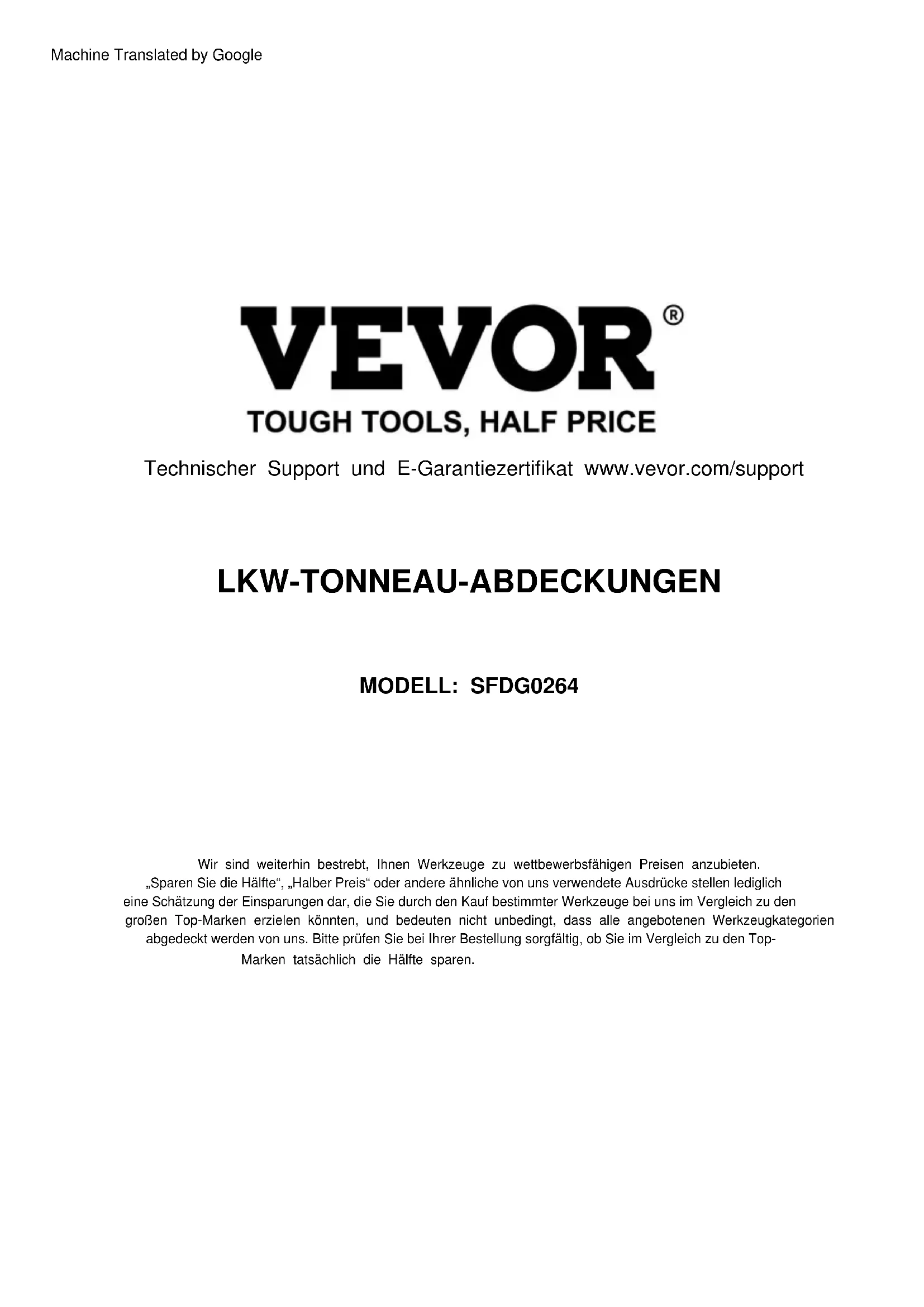 SFDG0264 - Autozubehör Vevor - Kostenlose Bedienungsanleitung