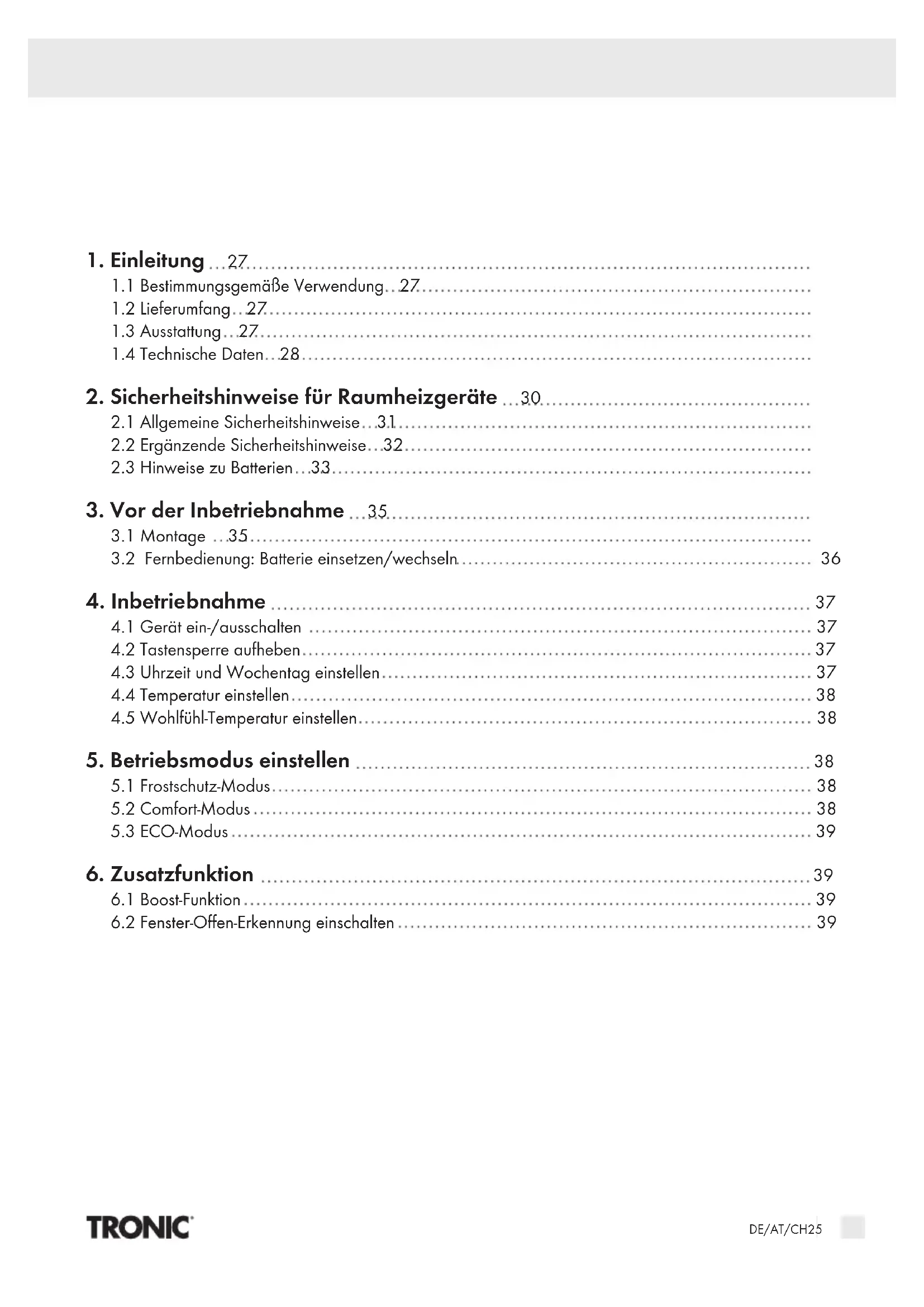 2. Sicherheitshinweise für Raumheizgeräte 30