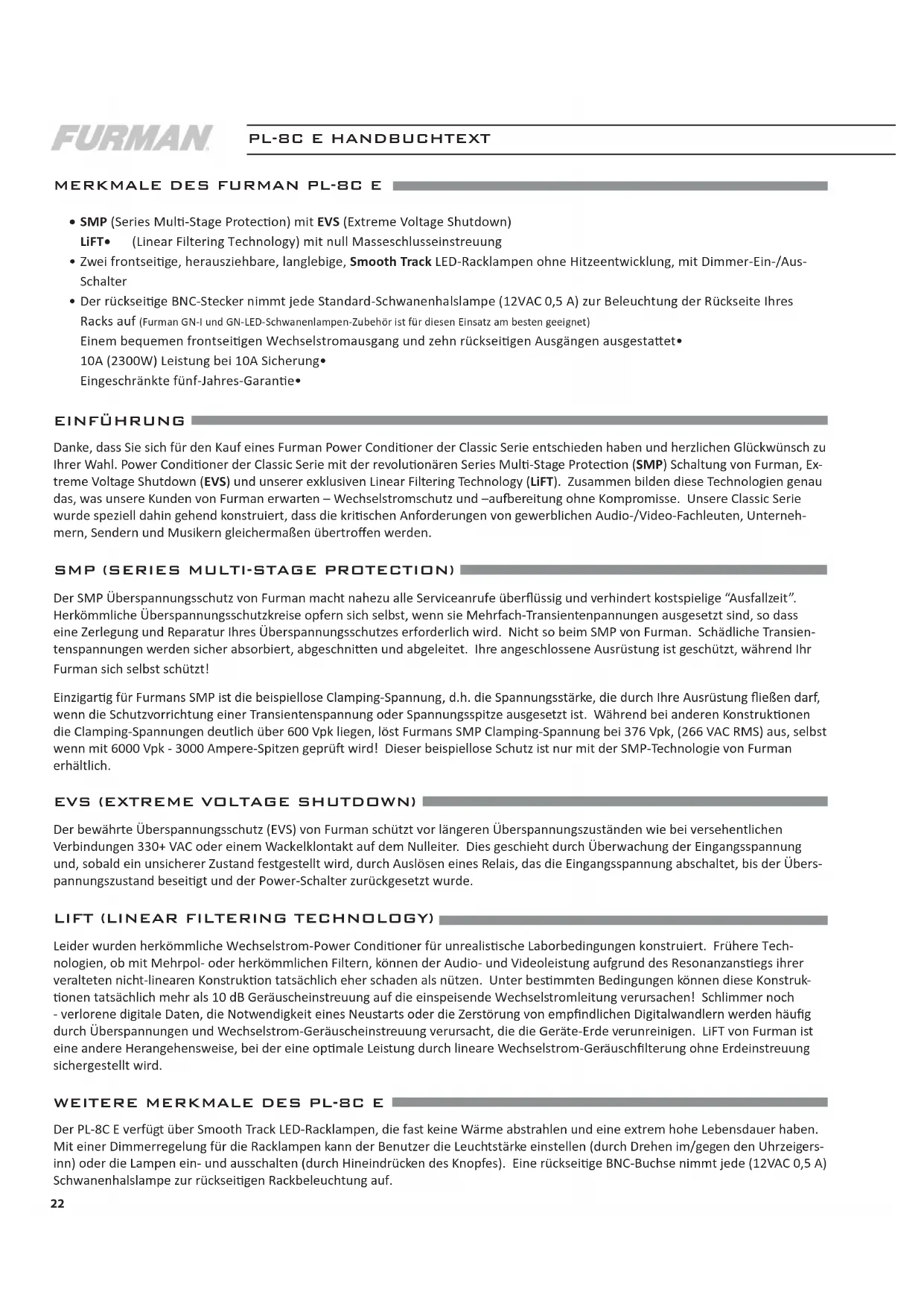 BEDIENUNGSANLEITUNG PL8C E Furman