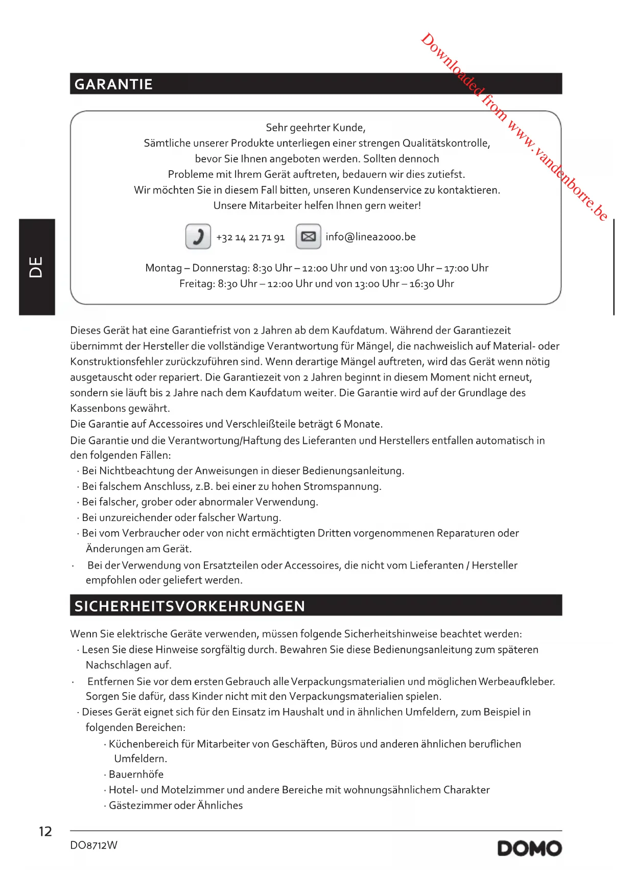 - Gästezimmer oder Ähnliches Downloaded from www.vandenborre.be13 DO8712W www.domo-elektro.be