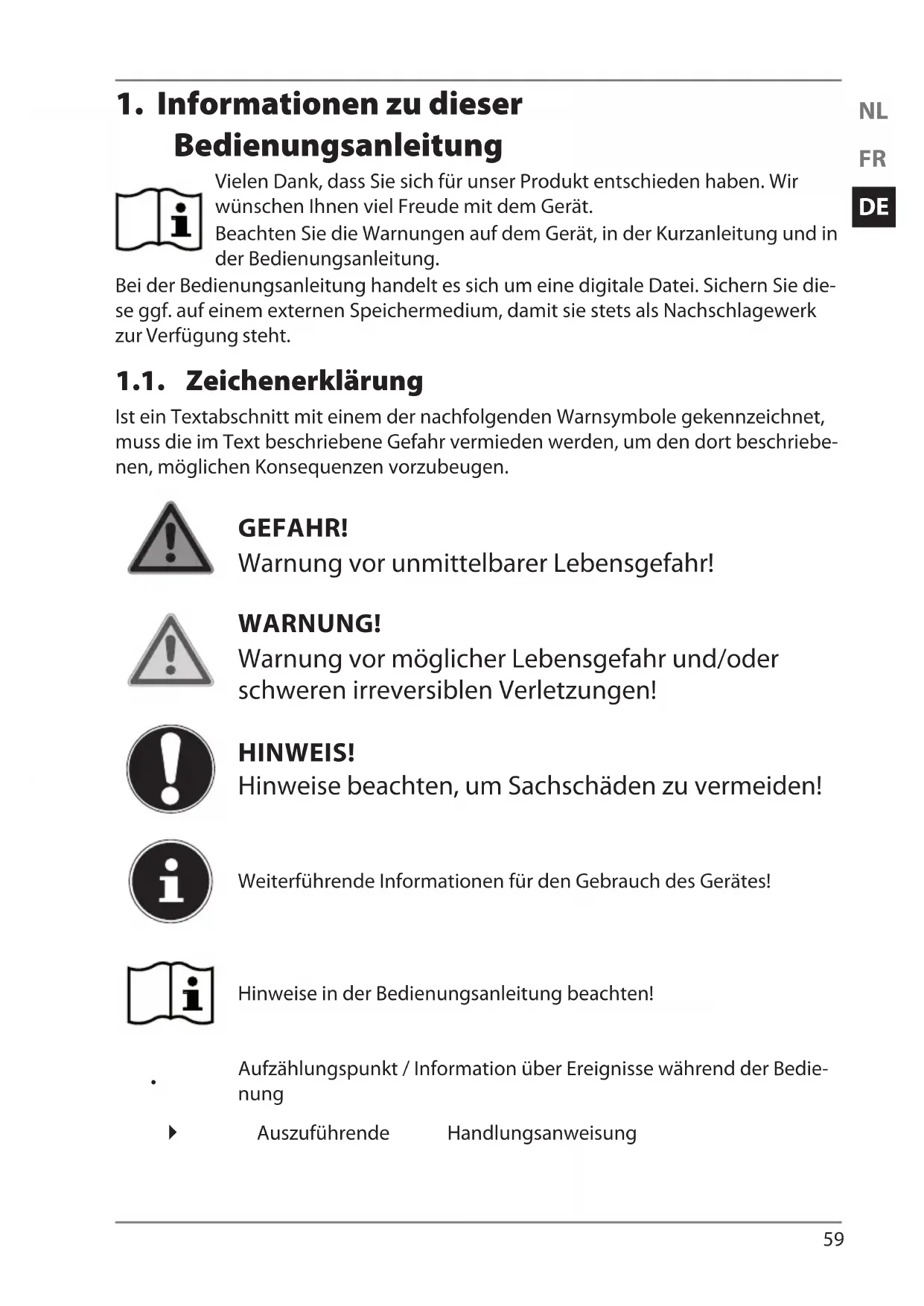 1. Informationen zu dieser Bedienungsanleitung ...................................... 59