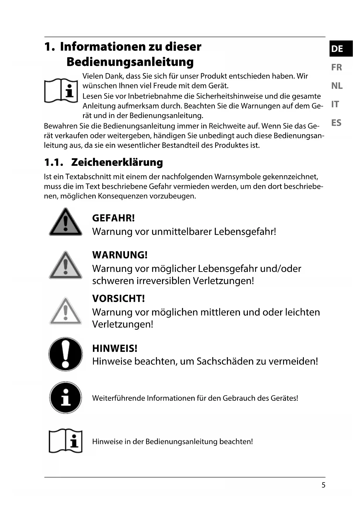 1. Informationen zu dieser Bedienungsanleitung ........................................ 5
