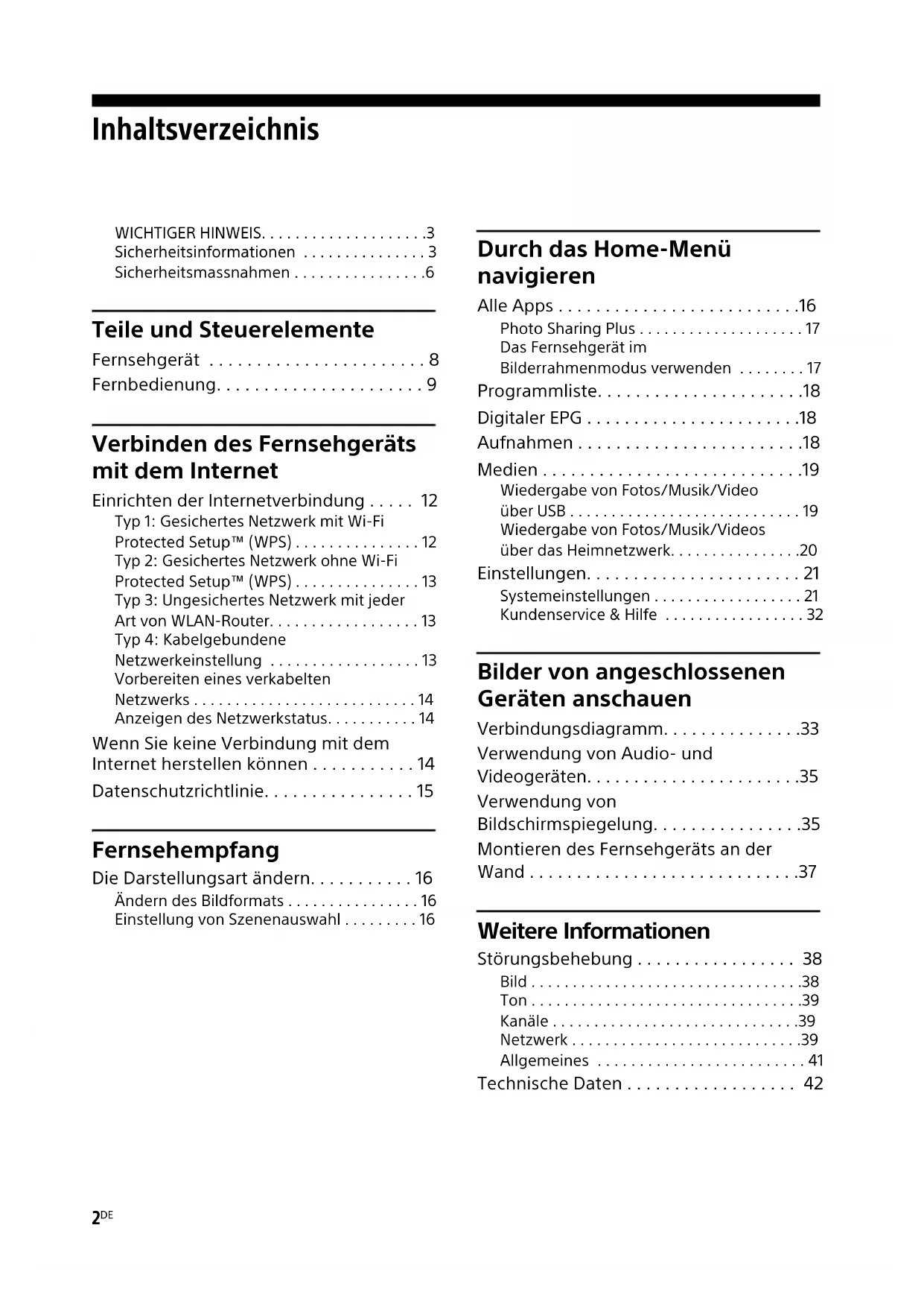 - Left KDL-49WE7xx / 49WE6xx / 43WE7xx / 40WE6xx / 40RE4xx / 32WE6xx / 32W66xx / 32W61xx / 32RE4xx 4-689-642-62(1) Inhaltsverzeichnis WICHTIGER HINWEIS p. 3