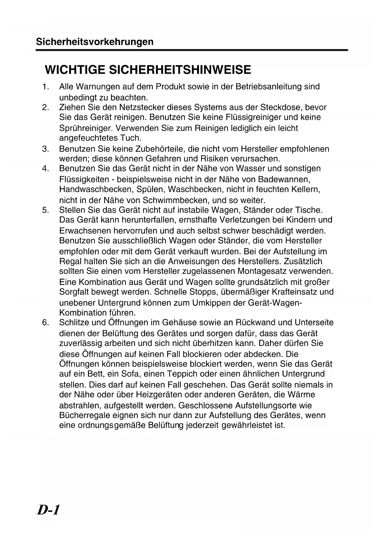 ewährleistet ist. Sicherheitsvorkehrungen D-1.