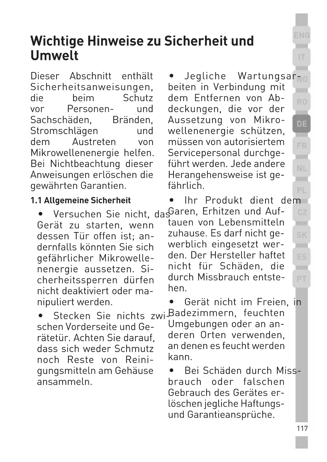- Bei Schäden durch Miss- brauch oder falschen Gebrauch des Gerätes er- löschen jegliche Haftungs- und Garantieansprüche. Wichtige Hinweise zu Sicherheit und Umwelt118