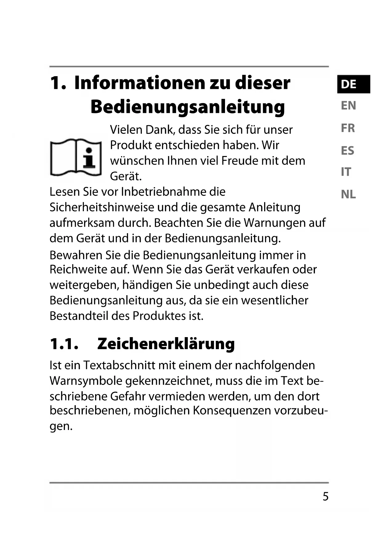 Bedienungsanleitung .................................... 5 1.1. Zeichenerklärung ............................................5