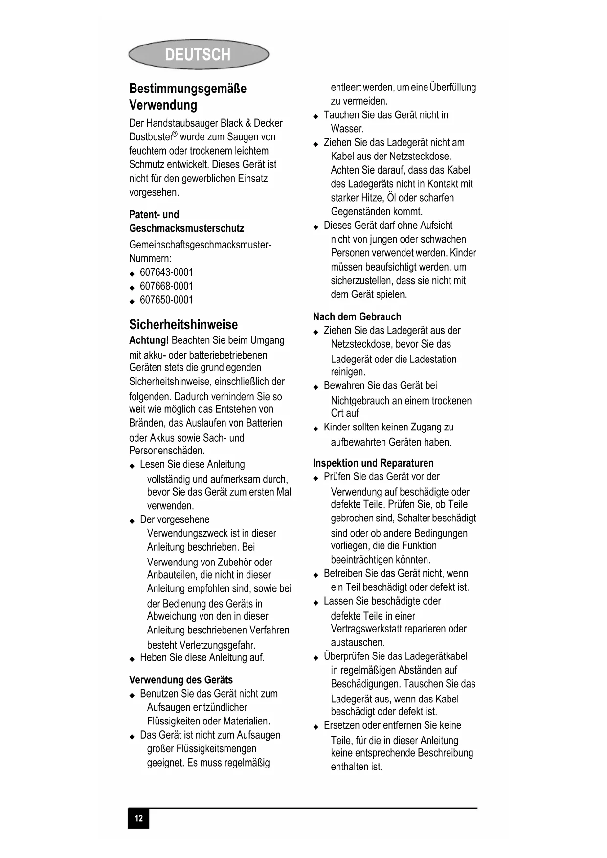 Der Handstaubsauger Black & Decker Dustbuster® wurde zum Saugen von feuchtem oder trockenem wichtem Schmutz entwickelt. Dieses Gerät ist nicht für den gewerblichen Einsatz vorgesehen.