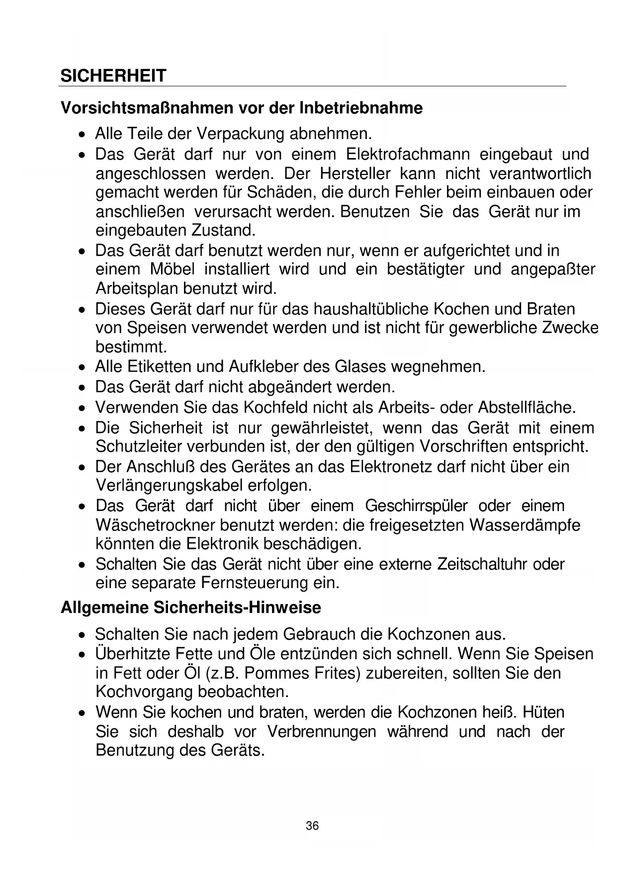 - WARNUNG: Wenn die Glasoberfläche gesprungen ist, ist das Gerät auszuschalten um die Gefahr eines elektrischen Schlages zu vermeiden. Schutz vor weiteren Gefahren