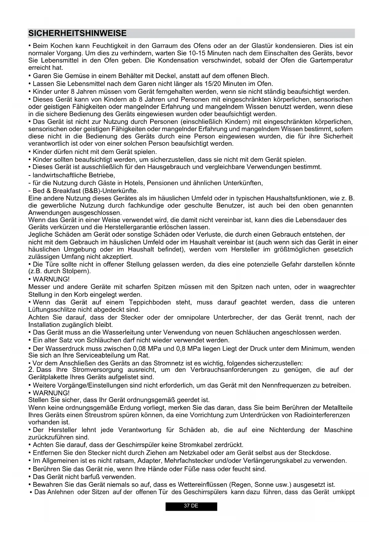 - Während der Verwendung wird das Gerät heiß. Die Heizelemente im Ofen nicht berühren.