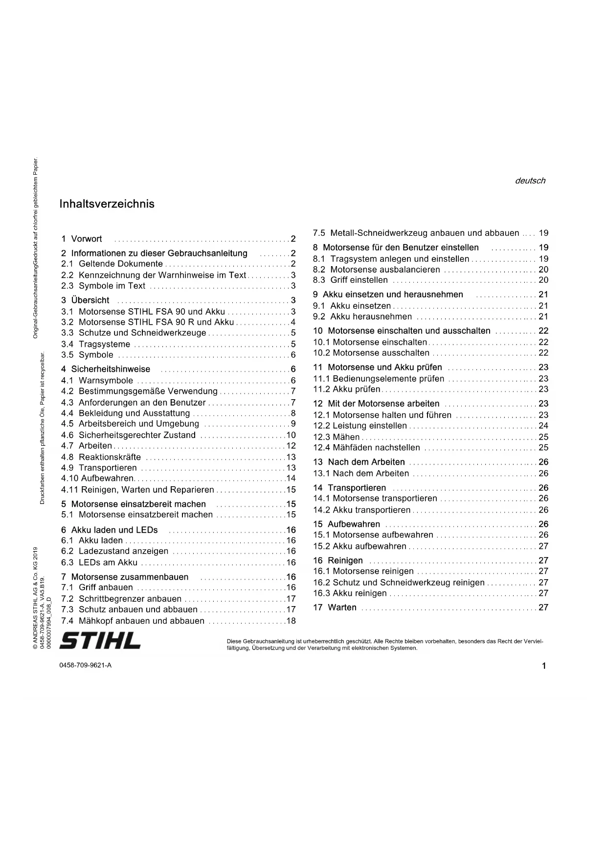 Druckfarben enthalten pflanzliche Öle, Papier ist recycelbar. © ANDREAS STIHL AG & Co. KG 2019 0458-709-9621-A. VA5.B19. 0000007994_008_D 0458-709-9621-A deutsch